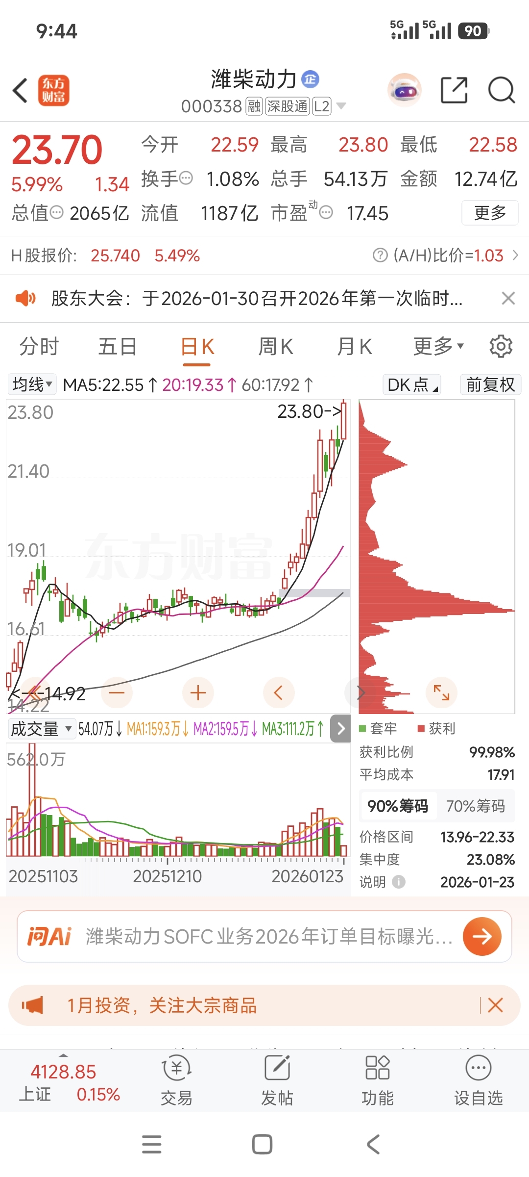 潍柴加油,市值突破2000,恭喜海尔一直2400