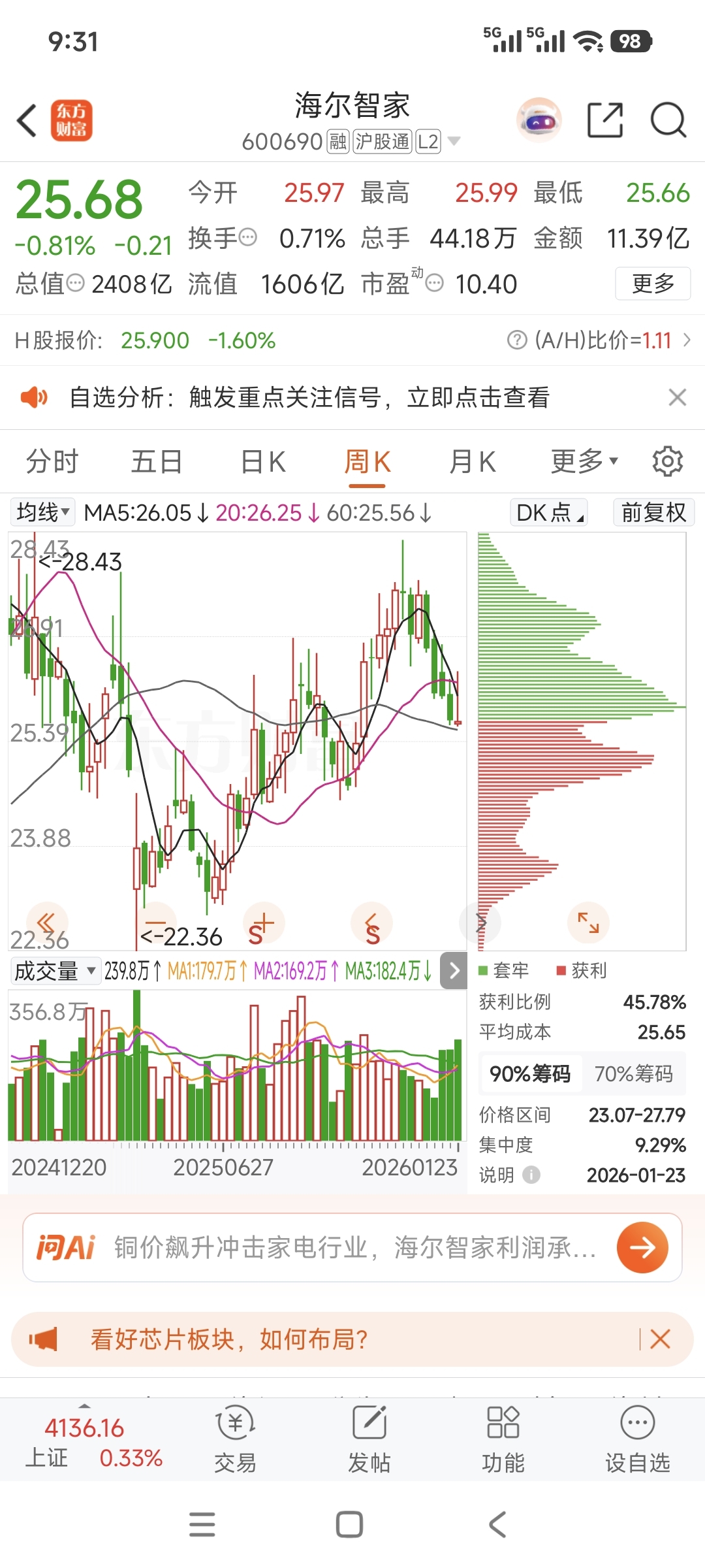 现在我的选择是逐步清仓海尔,毕竟选择白酒都没这么恶心,我目前还持有五粮液,在海尔留下的兄弟们发财!清仓后的资金,将逐步补仓到港股的科技和消费!