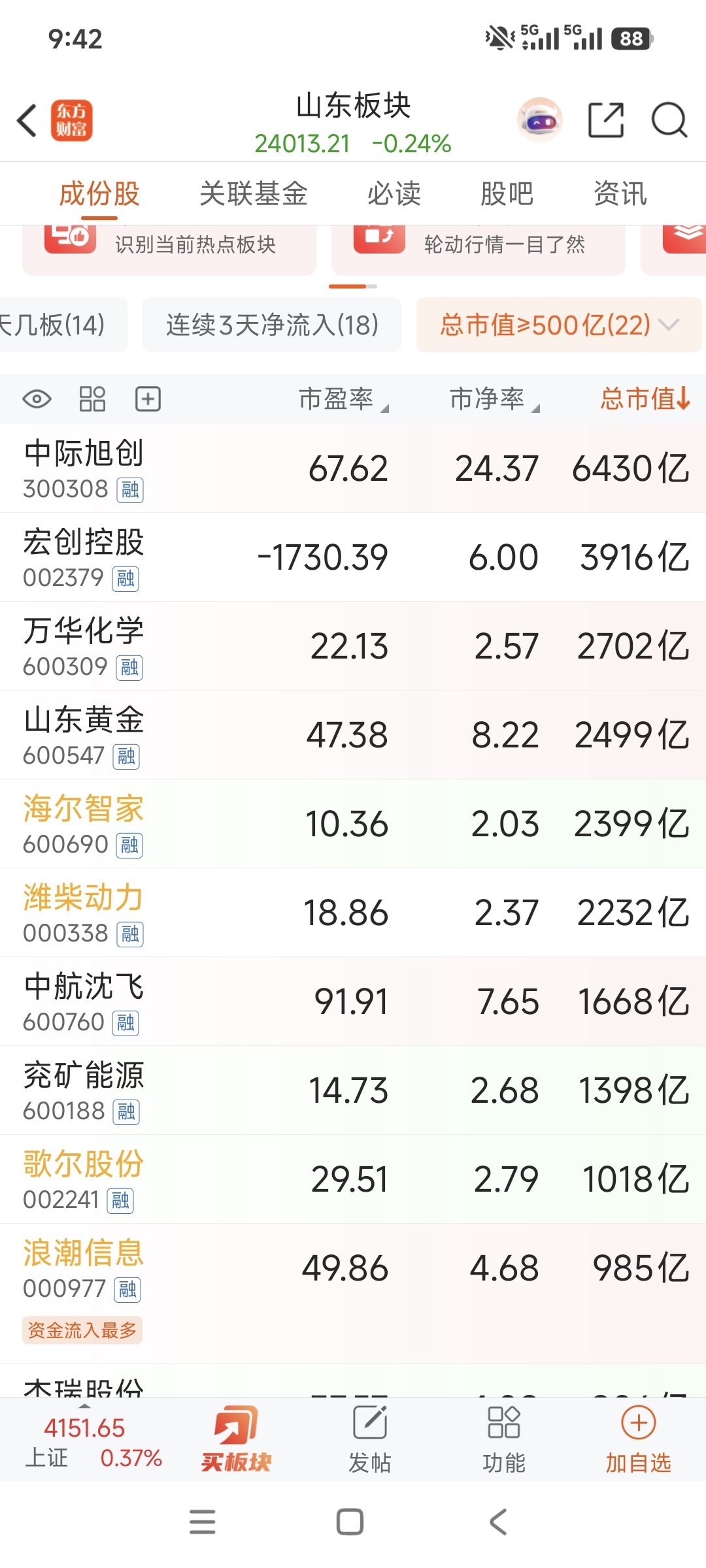 今天被山东黄金超越,恭喜海尔成为山东市值第五,马上被潍柴超越,成为第六