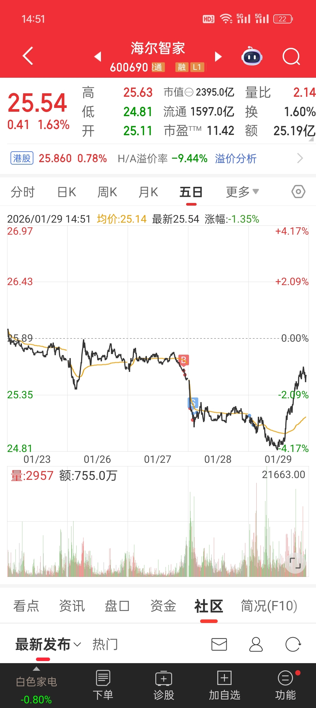 $海尔智家(SH600690)$ 股价回来了,低位割肉钱没了。内心的恐慌让我一遍遍低位割肉…