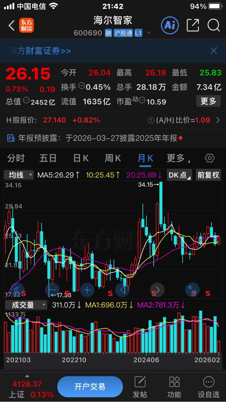 3100点时,你股价近35元!4100点过了,你回到26左右!你业绩连续保持2位