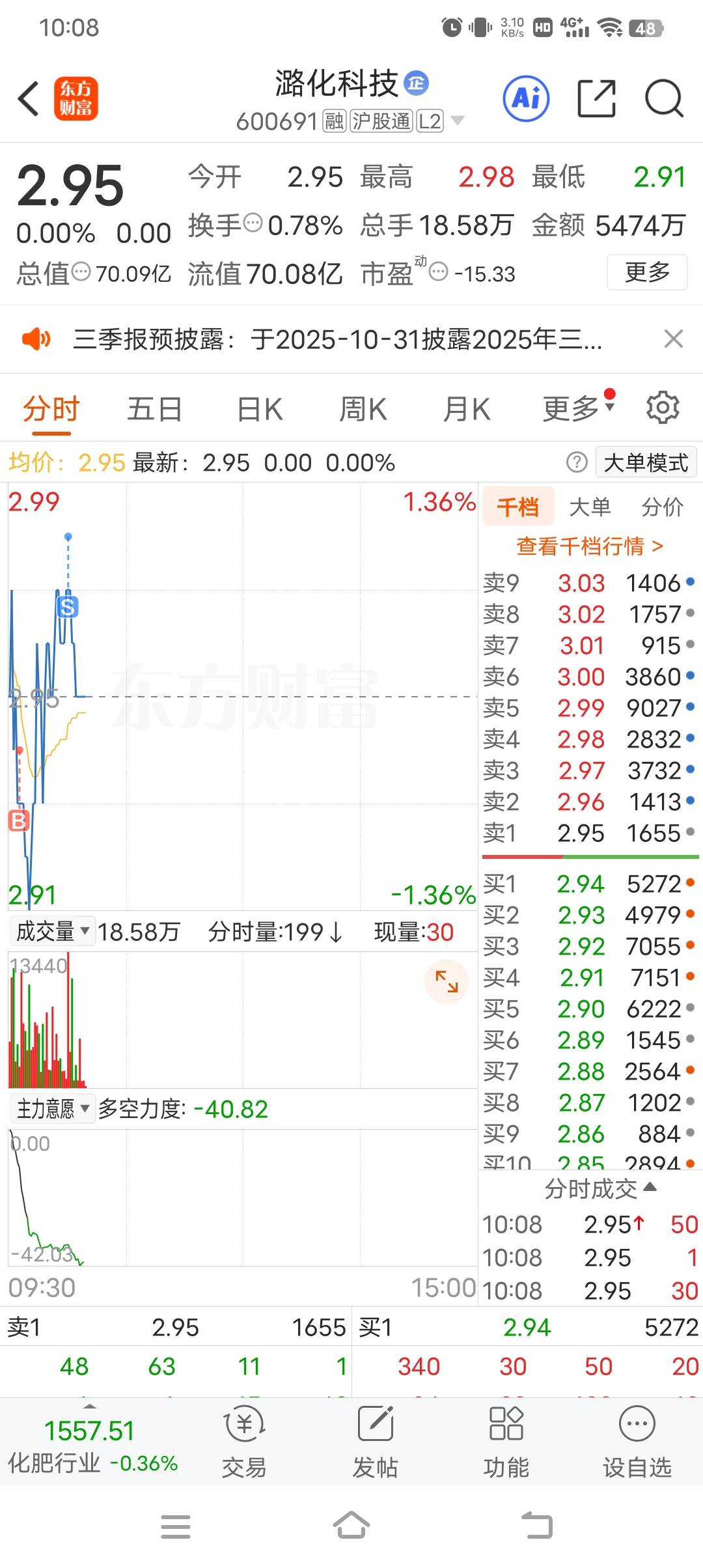 $潞化科技(SH600691)$ 一周饭钱到手 你们慢慢玩