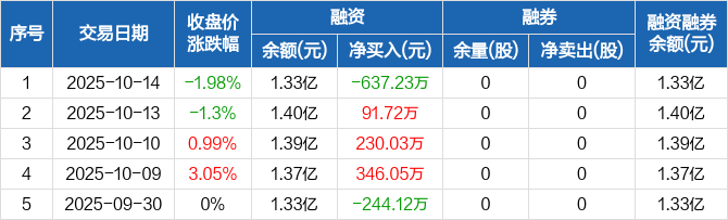潞化科技:融资净偿还637.23万元,融资余额1.33亿元(10-14)