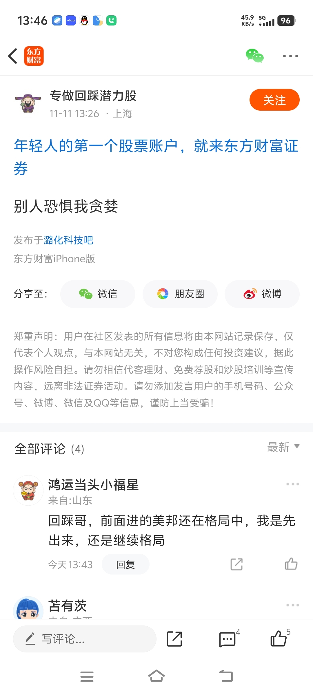 温馨提示: 1.根据《证券法》规定,禁止编造、传播虚假信息或者误导性信息,扰乱证券市场;2.用户在本社区发表的所有资料、言论等仅代表个人观点,与本网站立场无关,不对您构成任何投资建议。用户应基于自己的独立判断,自行决定证券投资并承担相应风险。《东方财富社区管理规定》