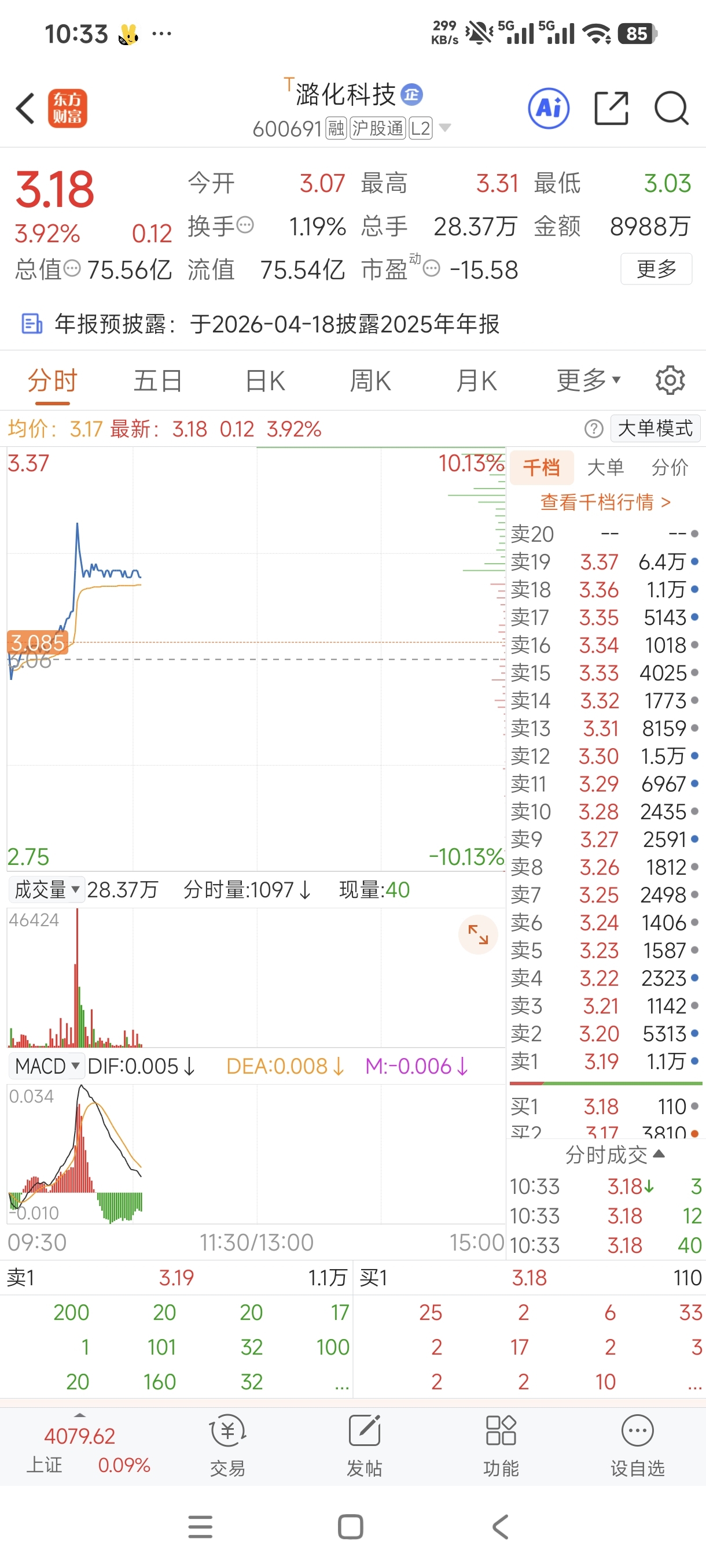$潞化科技(SH600691)$ 最高331距离涨停只差6分钱