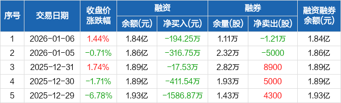 亚通股份:连续7日融资净偿还累计2646.49万元(01-06)