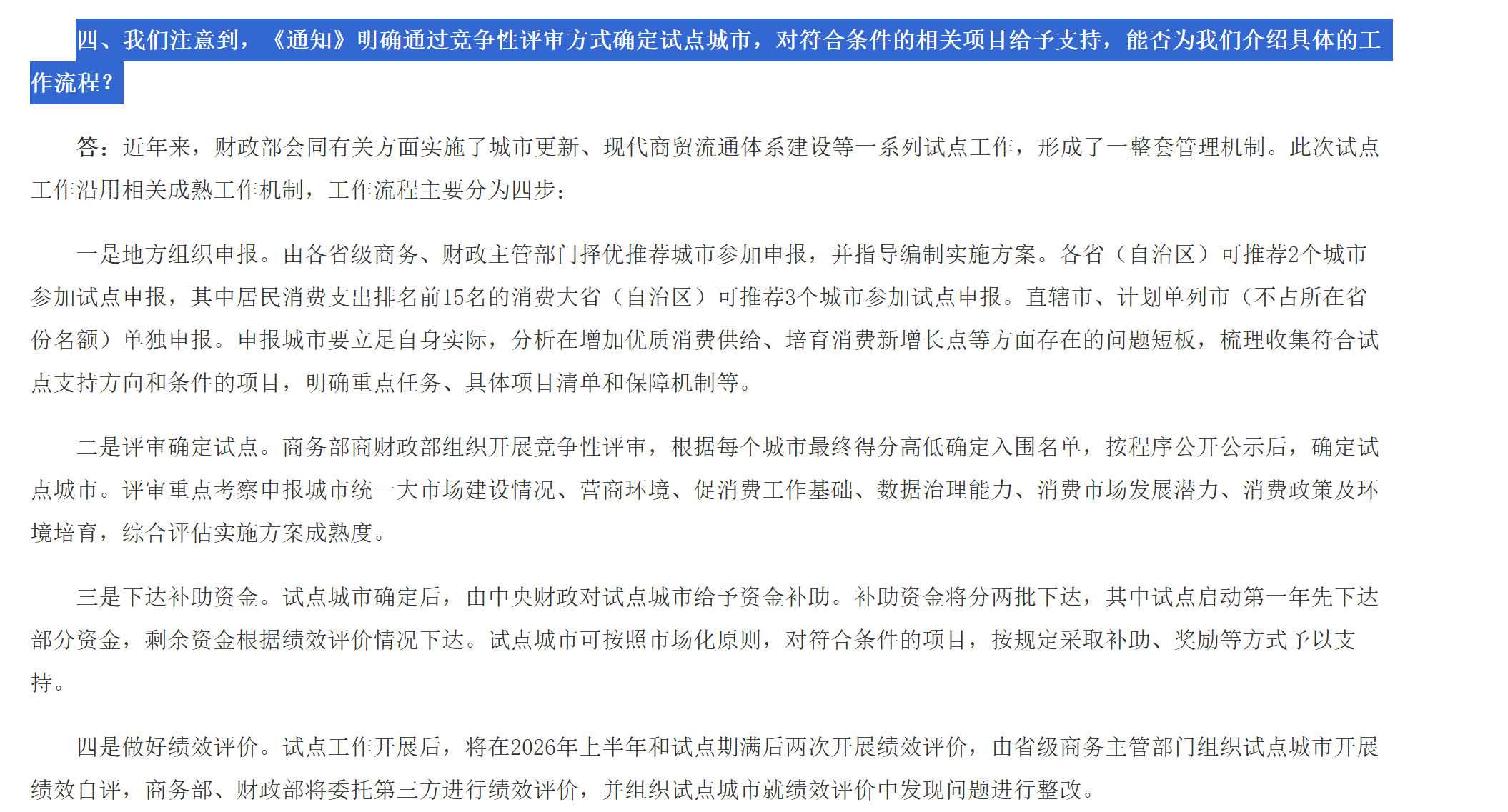 9月30日,财政部与商务部联合印发通知,支持老字号和新消费品牌企业开设新店、推出新品,引导企业转型升级。政策支持50个城市试点,实施期两年,主要探索三方面创新。中央财政对试点城市给予资金补助,分两批下达,试点城市可对符合条件的经营主体予以支持。专家认为,《通知》的差异化设计有助于推动区域消费升级。