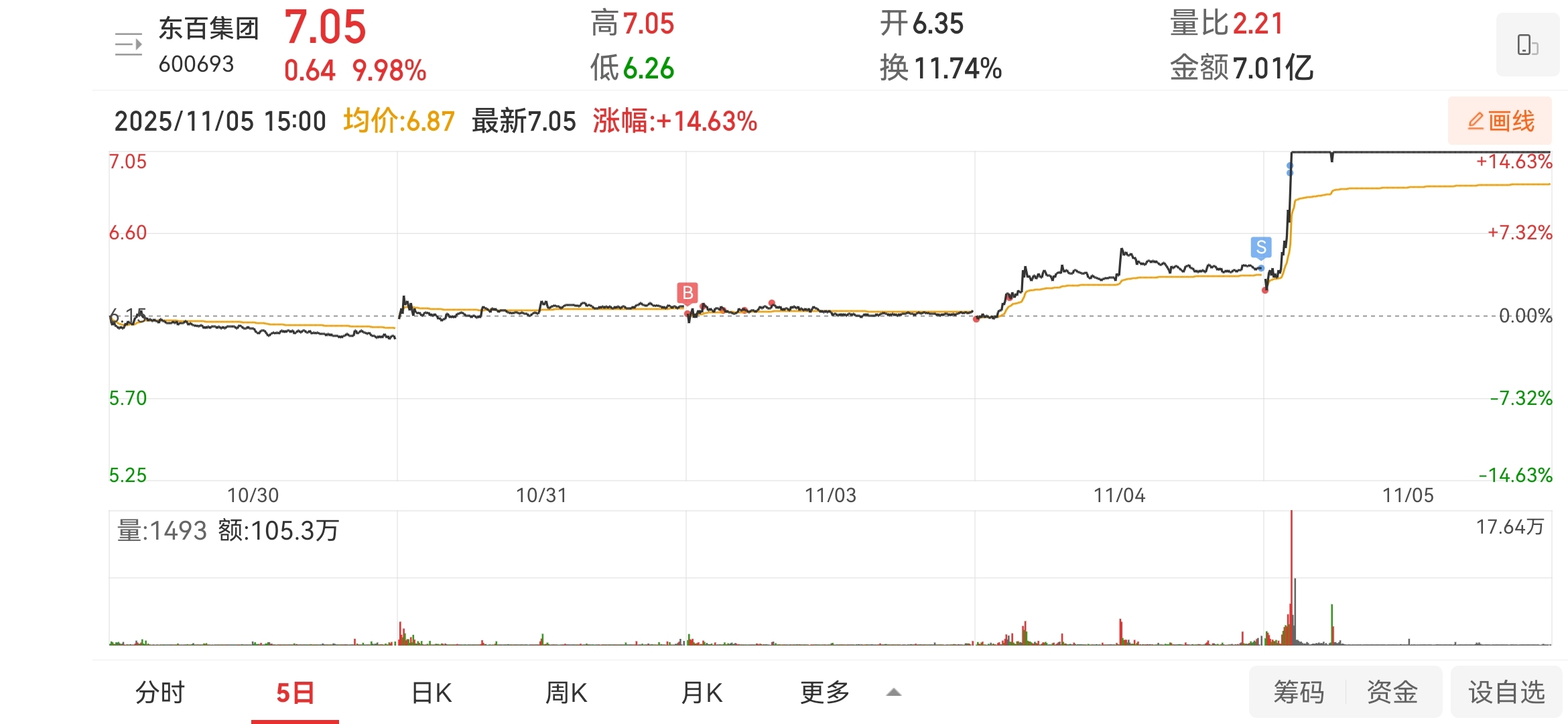 这个板的地位在零售免税板块还可以。明天,1.如果受龙头大幅震荡影响到水下我想再加点,但不能下到6.7以下。 2高举高打格局,也许真能走出来,不看别人脸色。