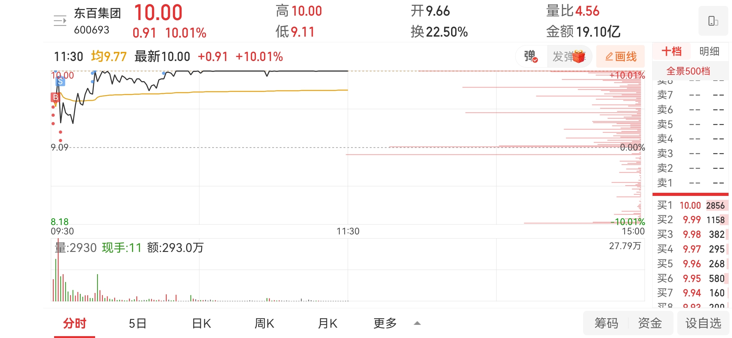 昨日净卖出东百集团(零售 平潭子公司),早上绕着昨日均价挂买单(昨日分歧栏板,激进操作),明显的分歧转一致,竟然板上又给T出去了,还是不够从容,担心大盘指数日线级顶背离风险的心理。晋级,有望挑战前高,毕竟所处板块低位,有补涨需求。