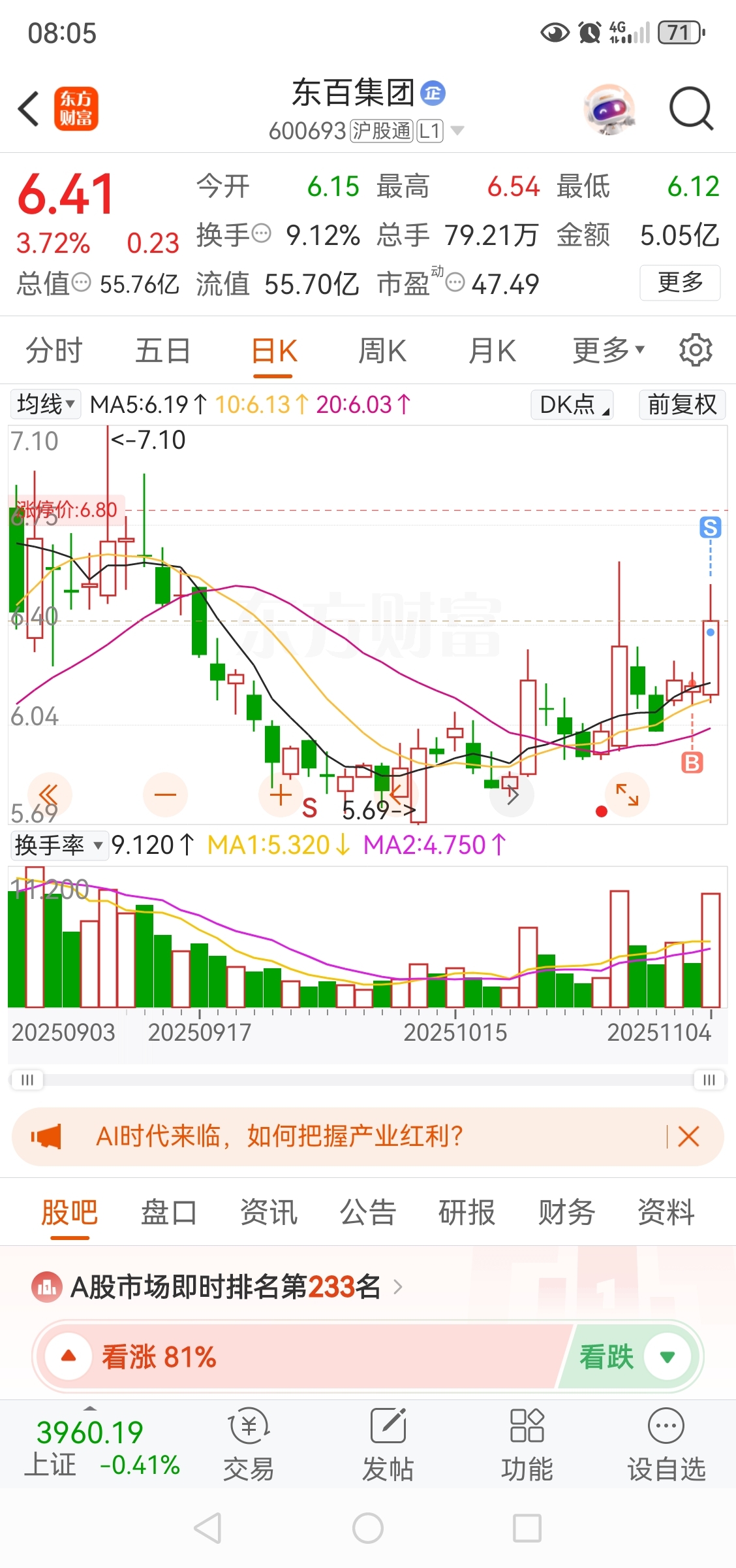 $东百集团(SH600693)$ 刻舟求剑,周五来抄底。