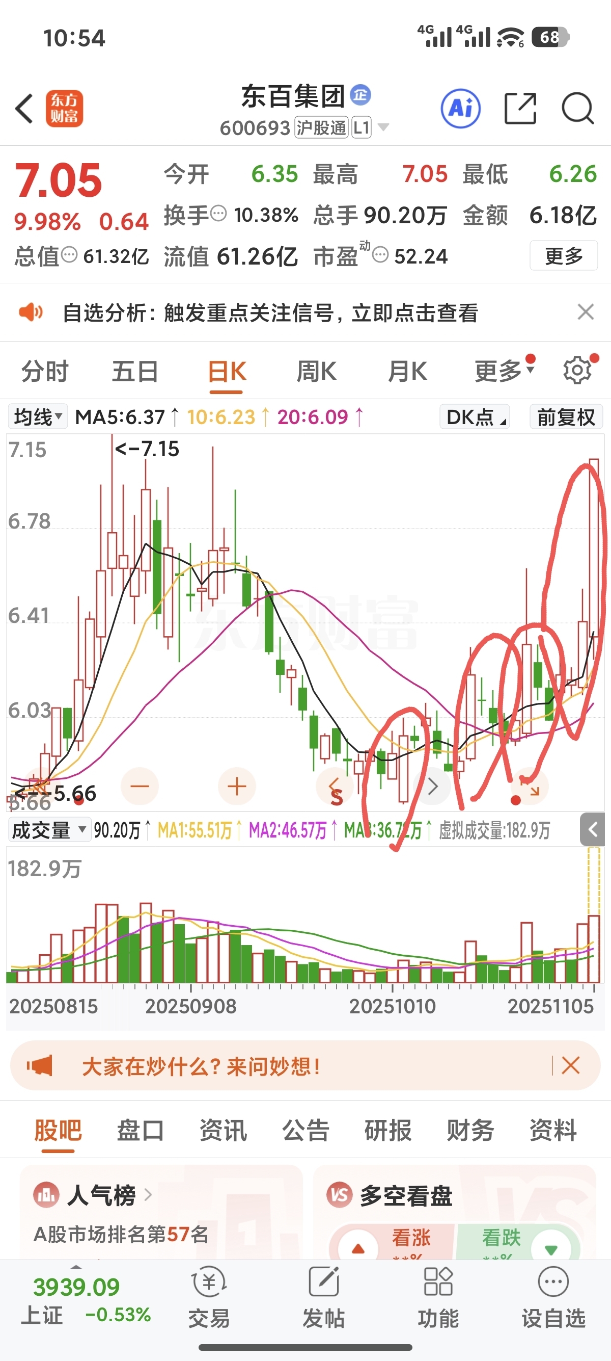 $东百集团(SH600693)$ 这线画的完美,就看后续是龙还是虫了