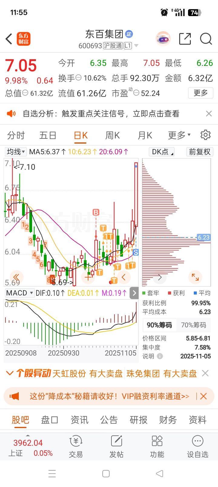 异动那天追高6.35进的,做T到今天赚15个点,下次再来大家发财