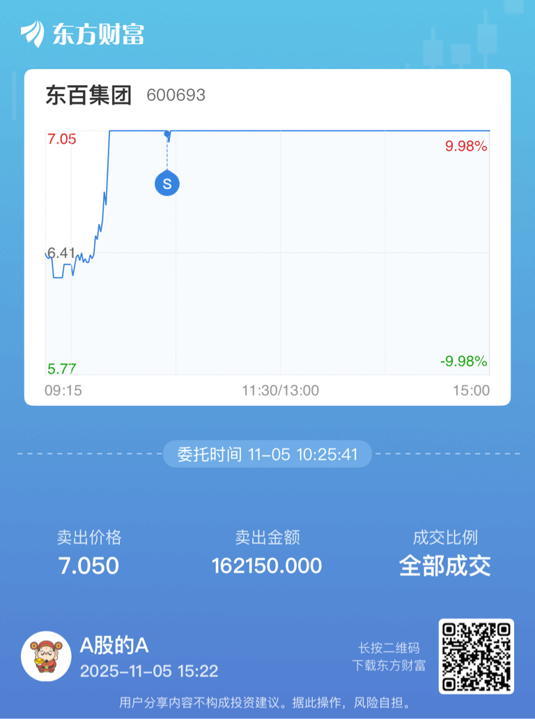 $东百集团(SH600693)$ 还好昨天要炸板前十秒卖了!