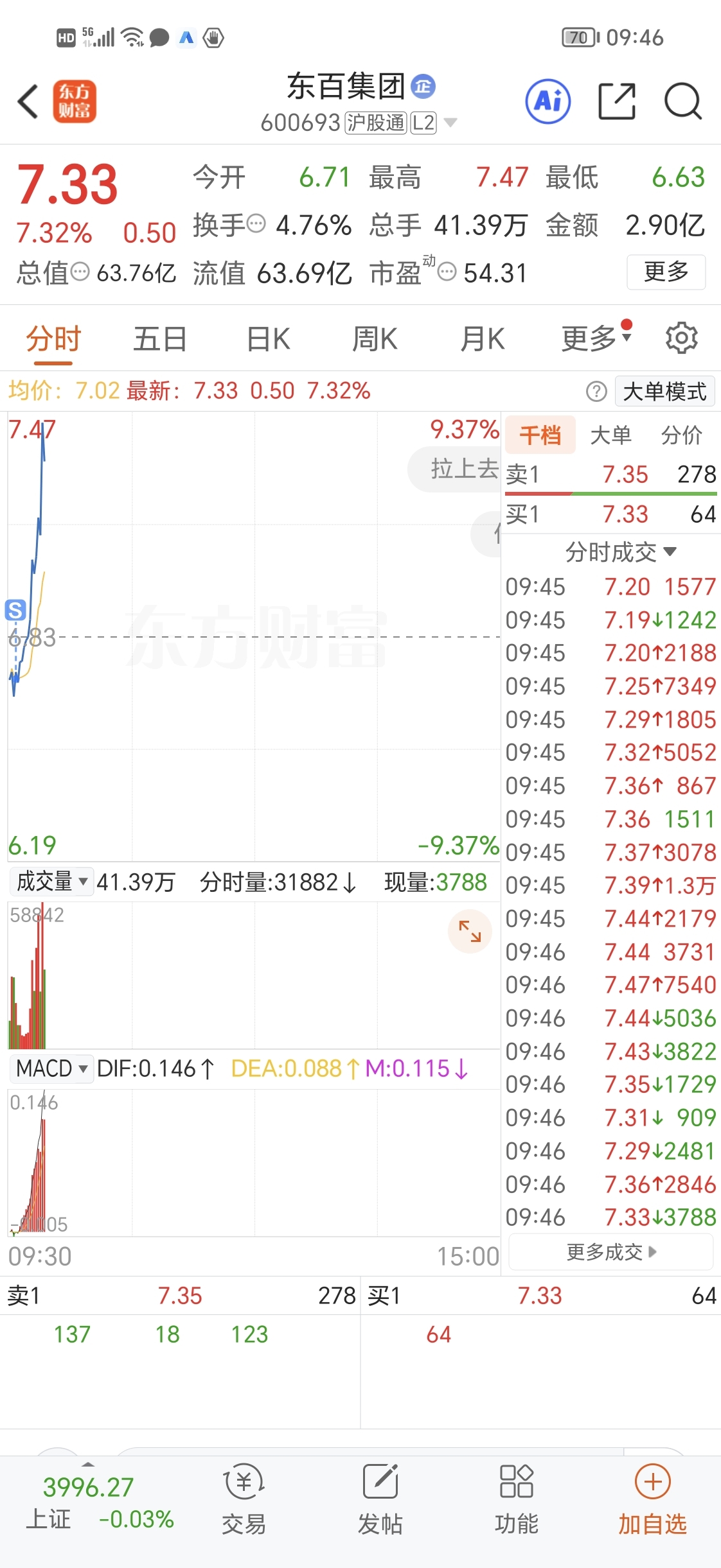 $东百集团(SH600693)$ 周五买了一点点割肉了,唉