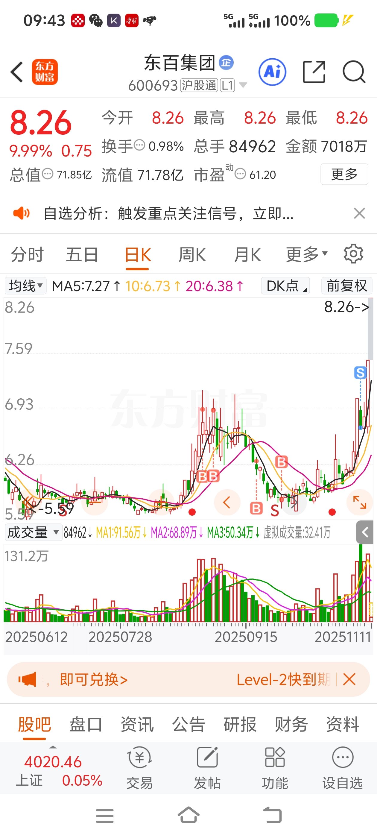 $东百集团(SH600693)$ 嘻嘻,哈哈,呜呜XX