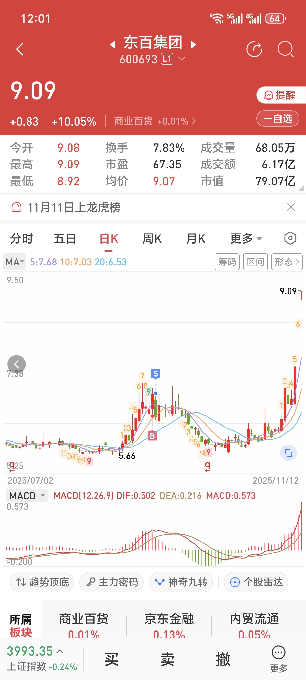 $东百集团(SH600693)$ 前天消费刚开始,平潭又不行,加上天天轮动没敢进,然后消费起来三天了,唉