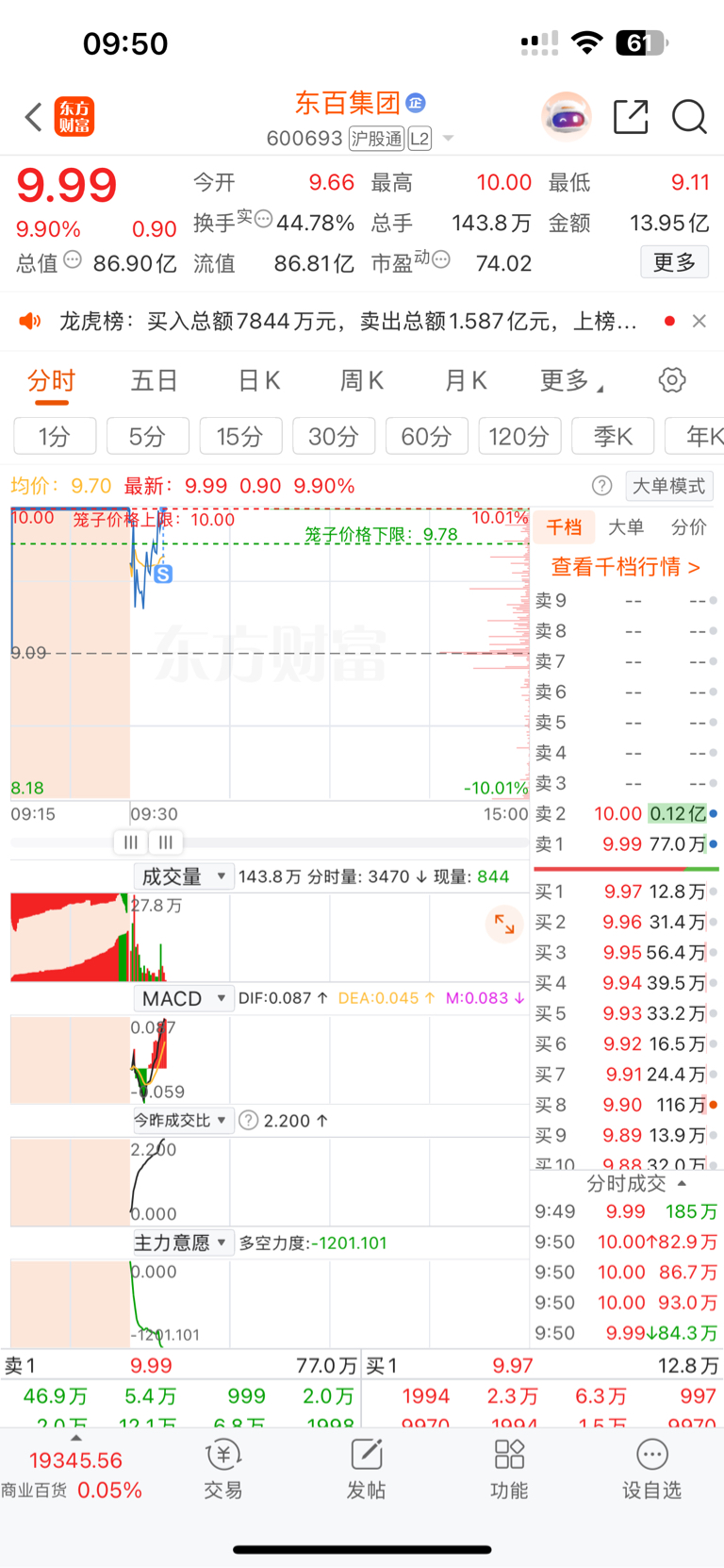 $东百集团(SH600693)$ 砸盘的太多了先溜了