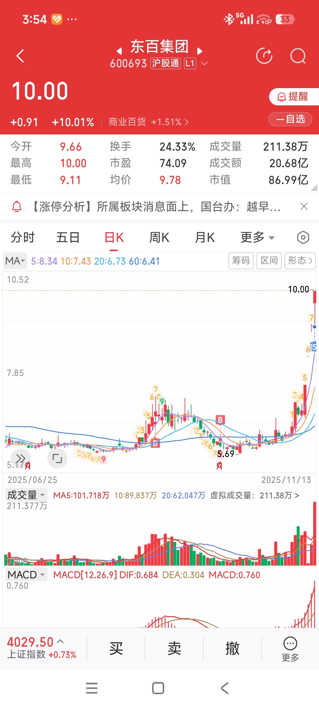 $东百集团(SH600693)$ 走了,希望你们留下的继续吃肉