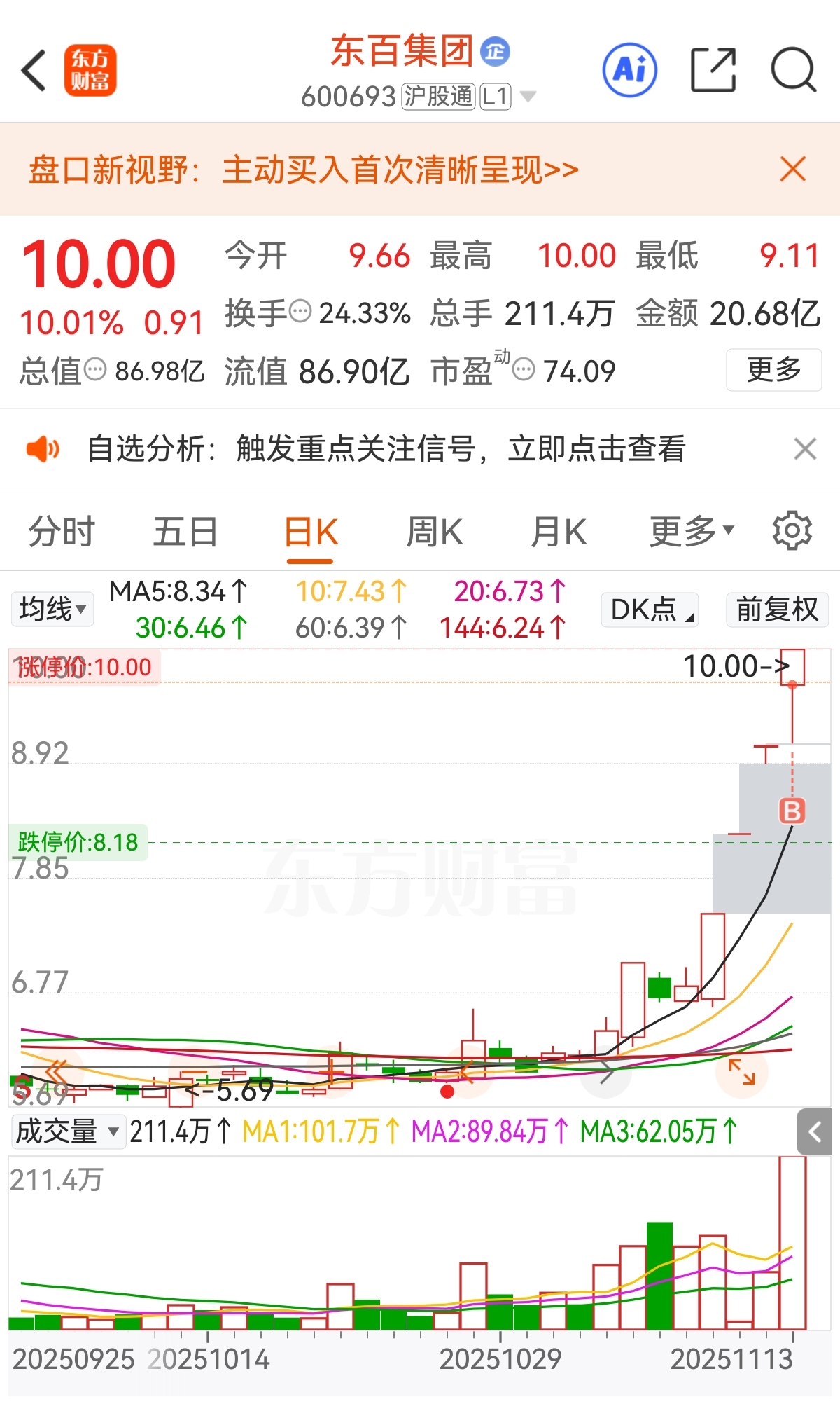 $东百集团(SH600693)$ 低位的还是可以玩玩的,小仓位,明天随意了。