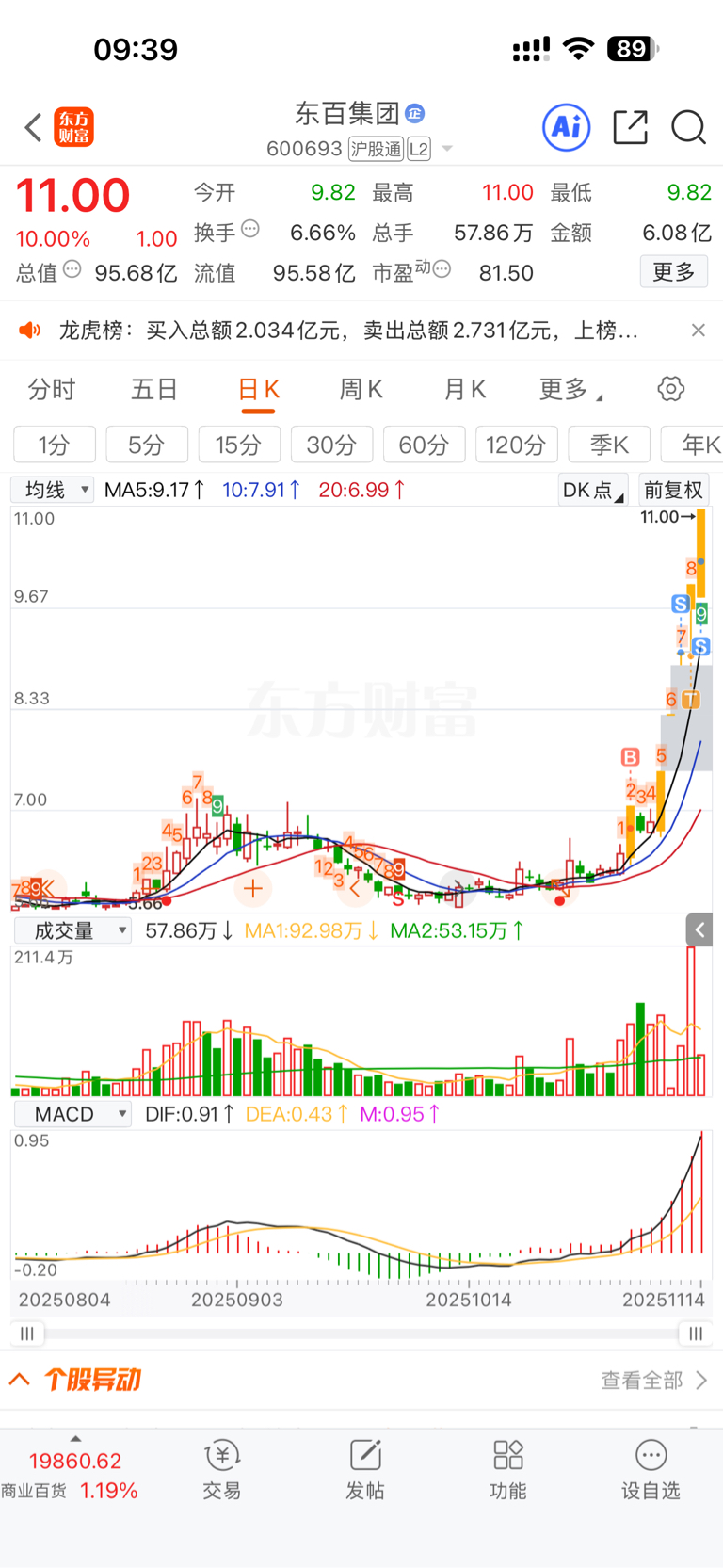 $东百集团(SH600693)$ 出了,不贪,寻找下个目标