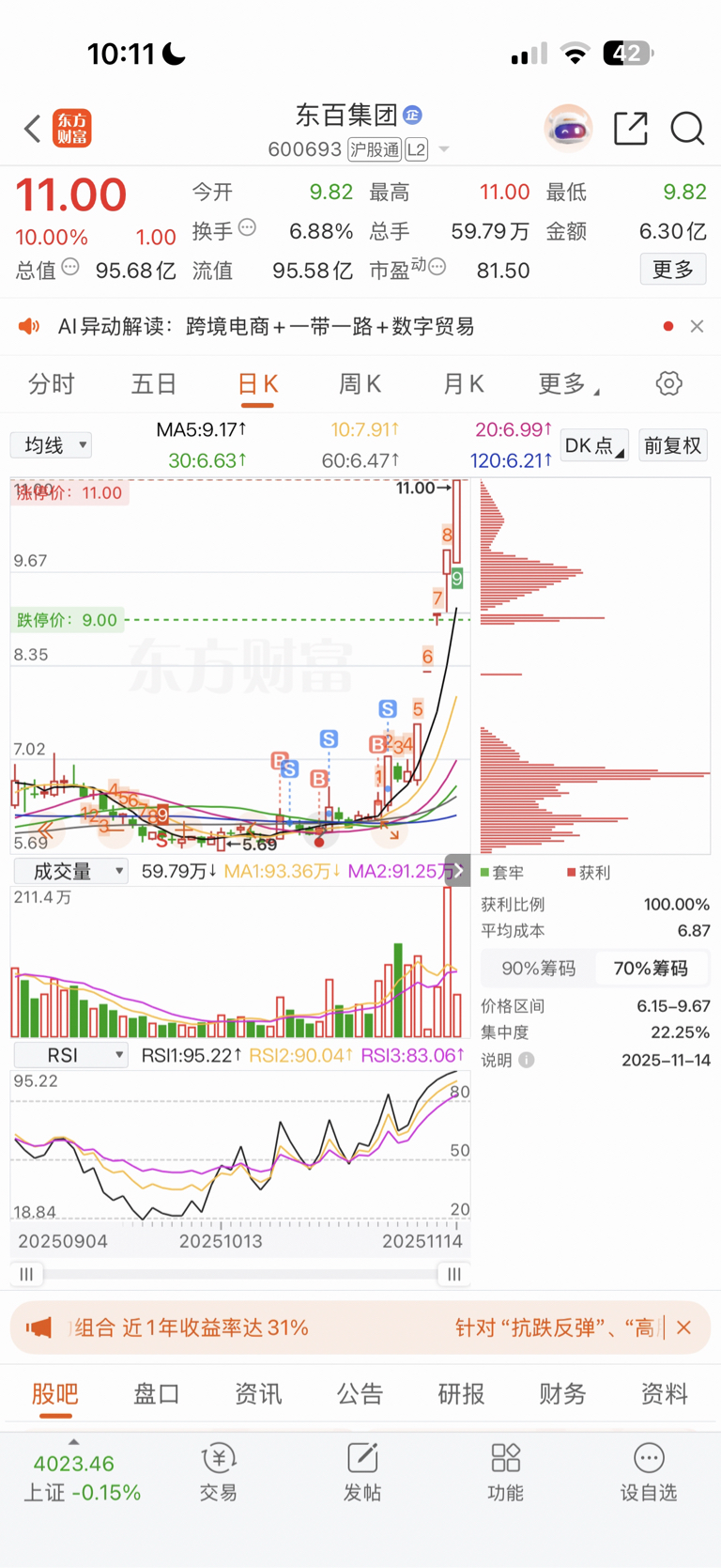 $东百集团(SH600693)$ 那天我没留意你,我一直唱多的东百,5.85、6.01、6.5上车机会,当时应该被套住了