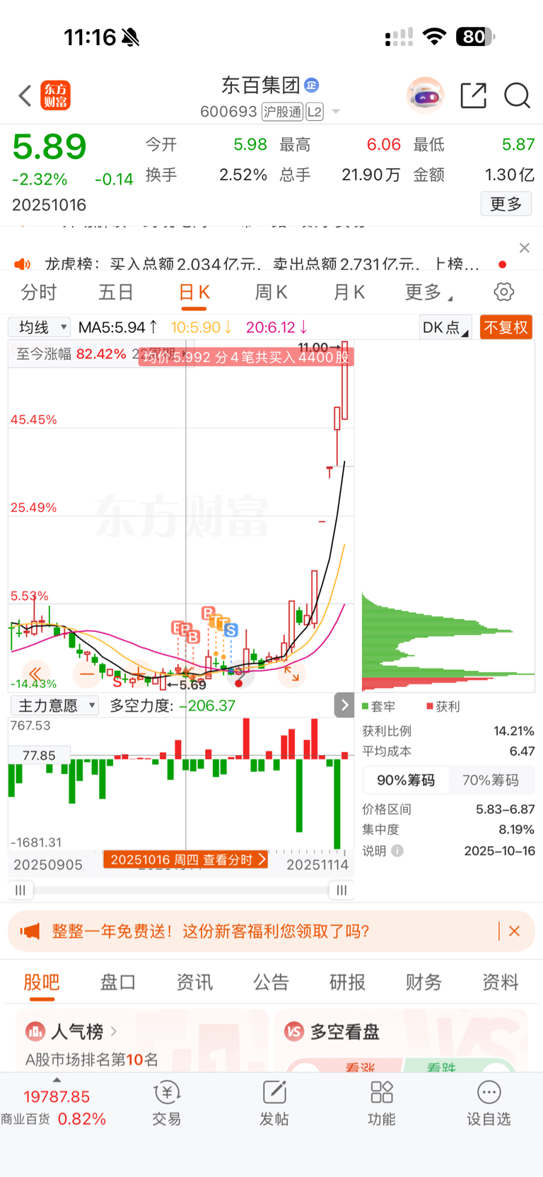 $东百集团(SH600693)$ 感谢主力,看着翻倍了