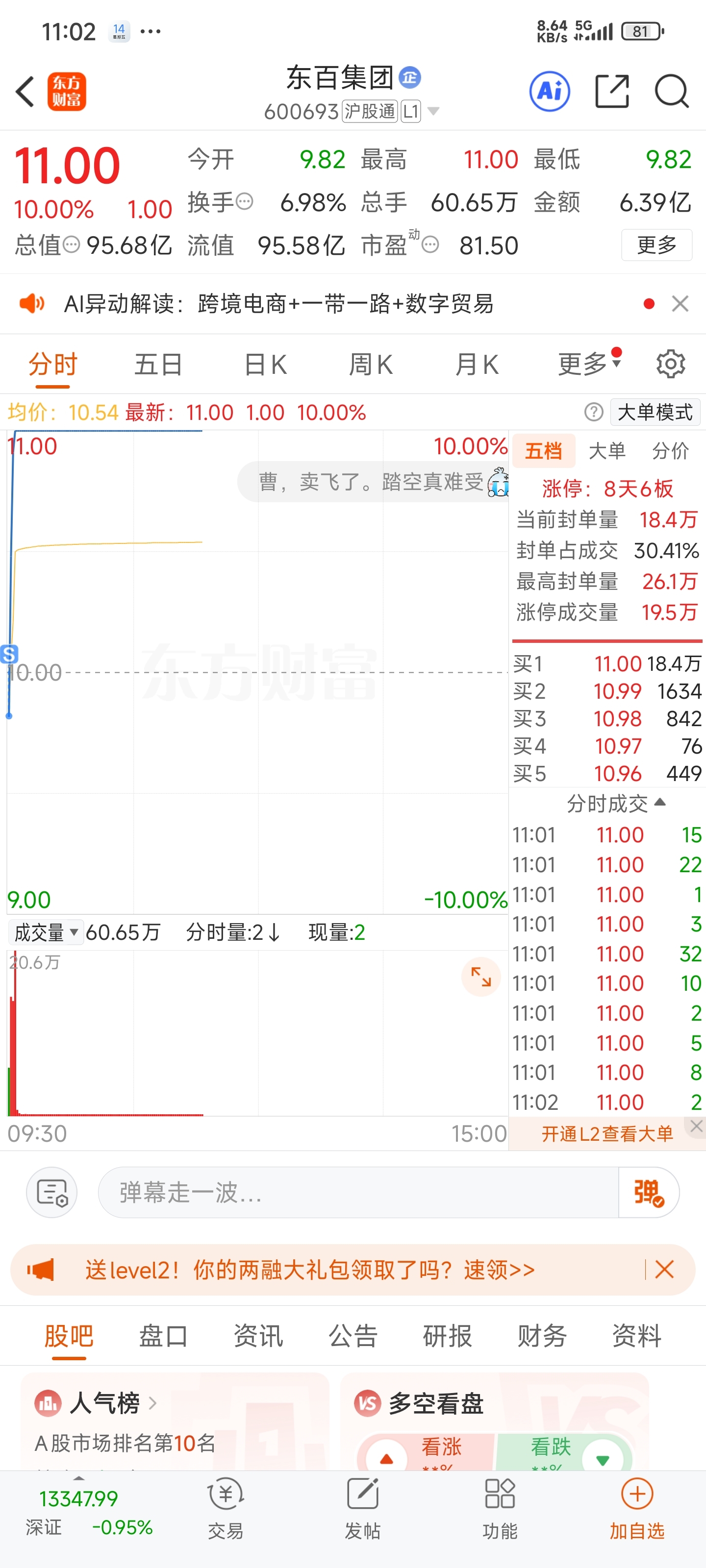 $东百集团(SH600693)$ 集合竞价那一下子我看到往跌停去,我害怕了,我就挂,没想到这样玩