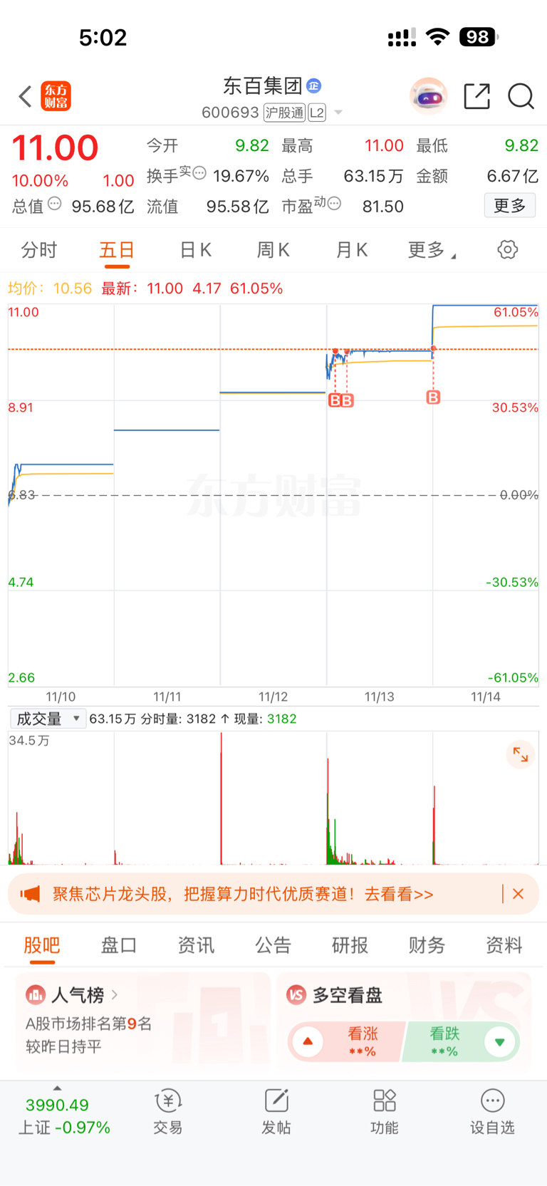 $东百集团(SH600693)$ 评论区看不懂就看不懂,分析这么多有的没的干嘛,合富周末关小黑屋,周一东百预期是小单一字,没关进去还有潜在空间板预期,随便赚的。