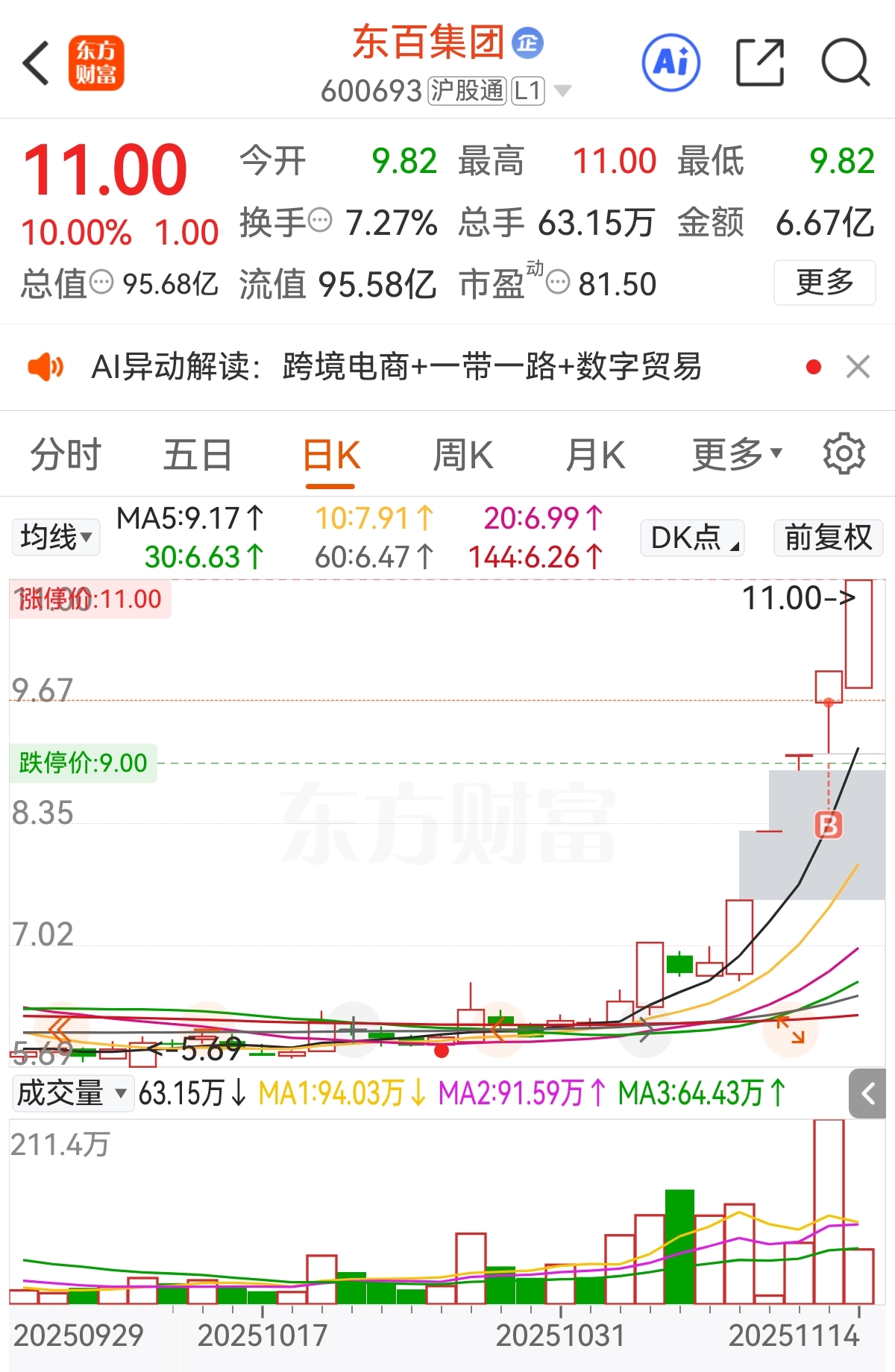 $东百集团(SH600693)$ 昨天入场,今天迅速上板,封板很稳,周一有不错的预期