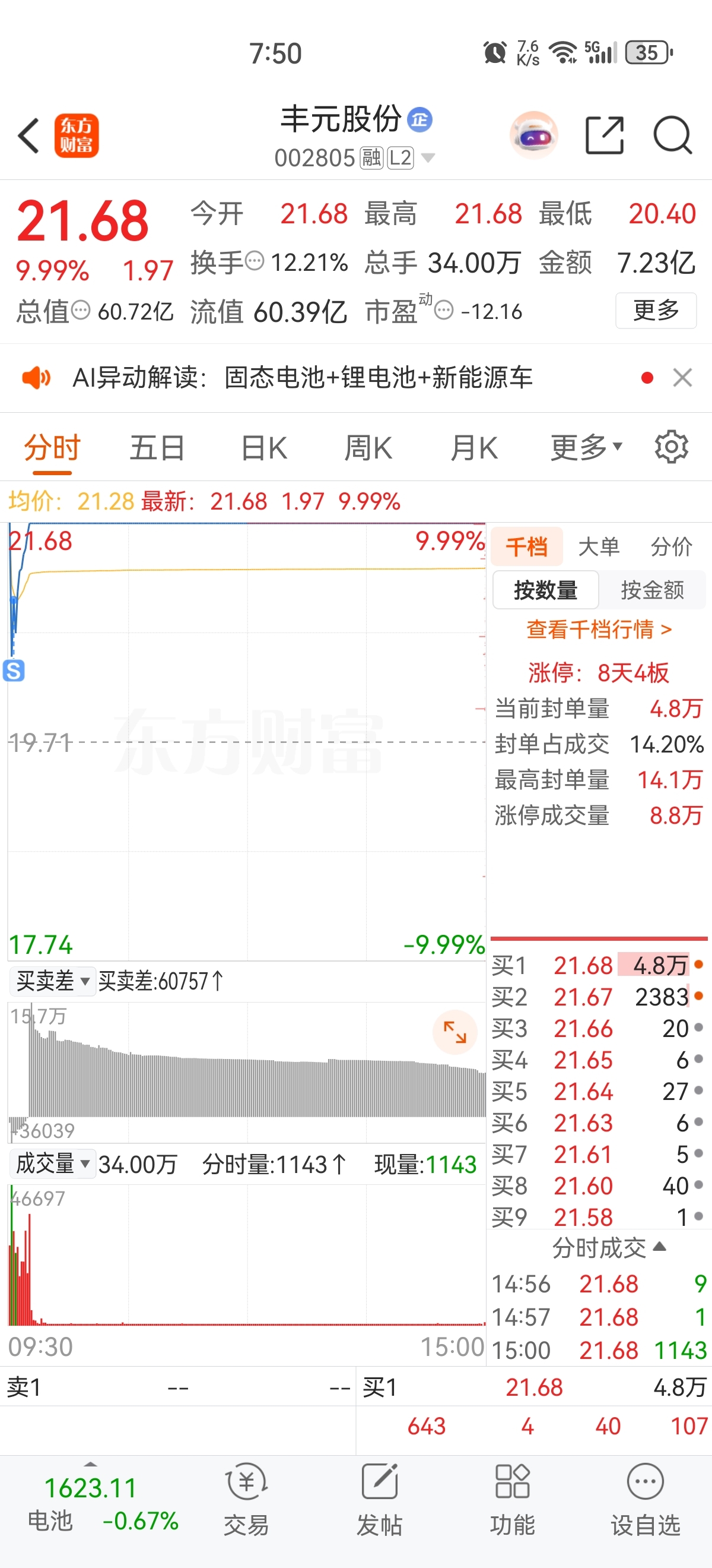 卖飞了丰元股份,打板东百排了一天队以为买不进去,居然尾盘成交了。