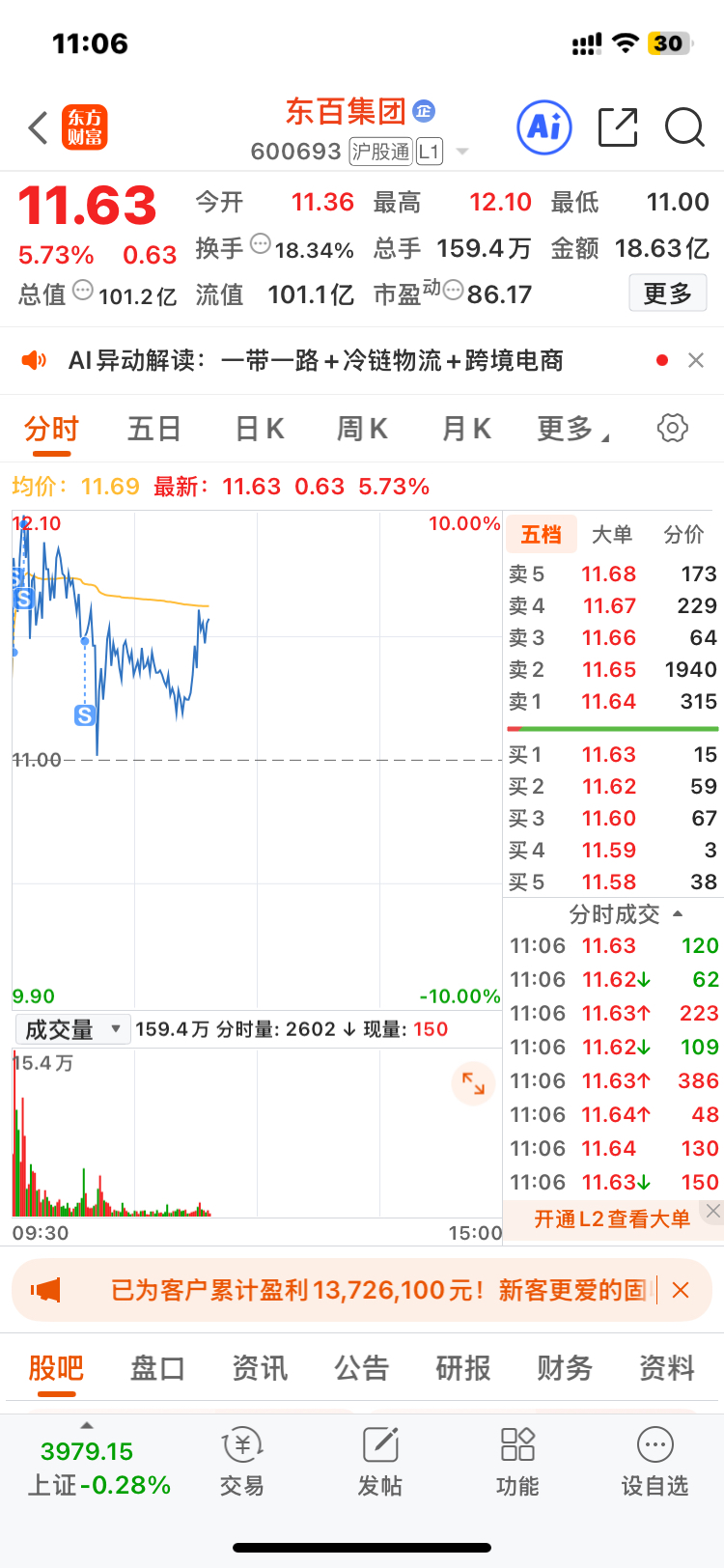 $东百集团(SH600693)$ 甩下车了