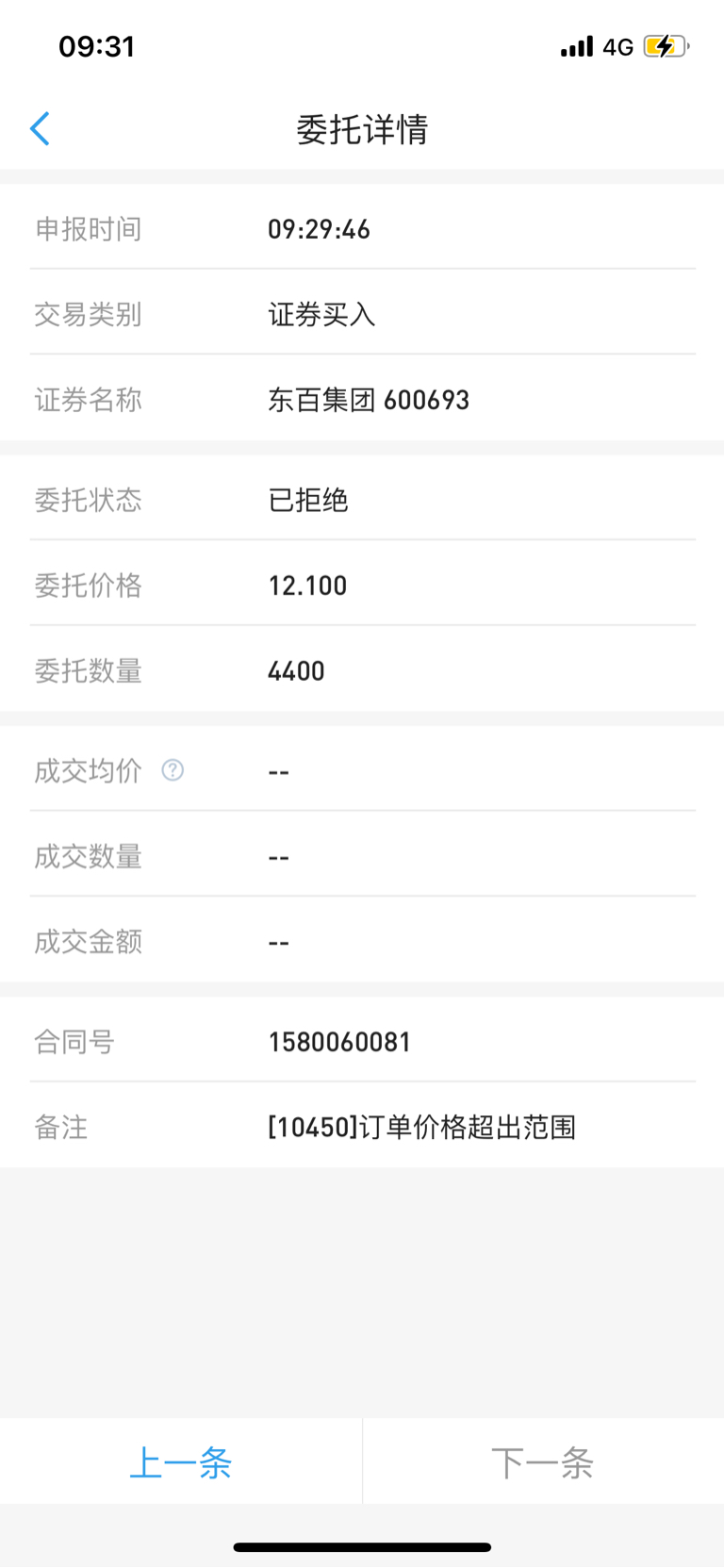 $东百集团(SH600693)$ 请问9:29分挂涨停价12.1,被拒绝什么意思?今天涨停价不是刚好12.10吗?系统说是超价格范围。