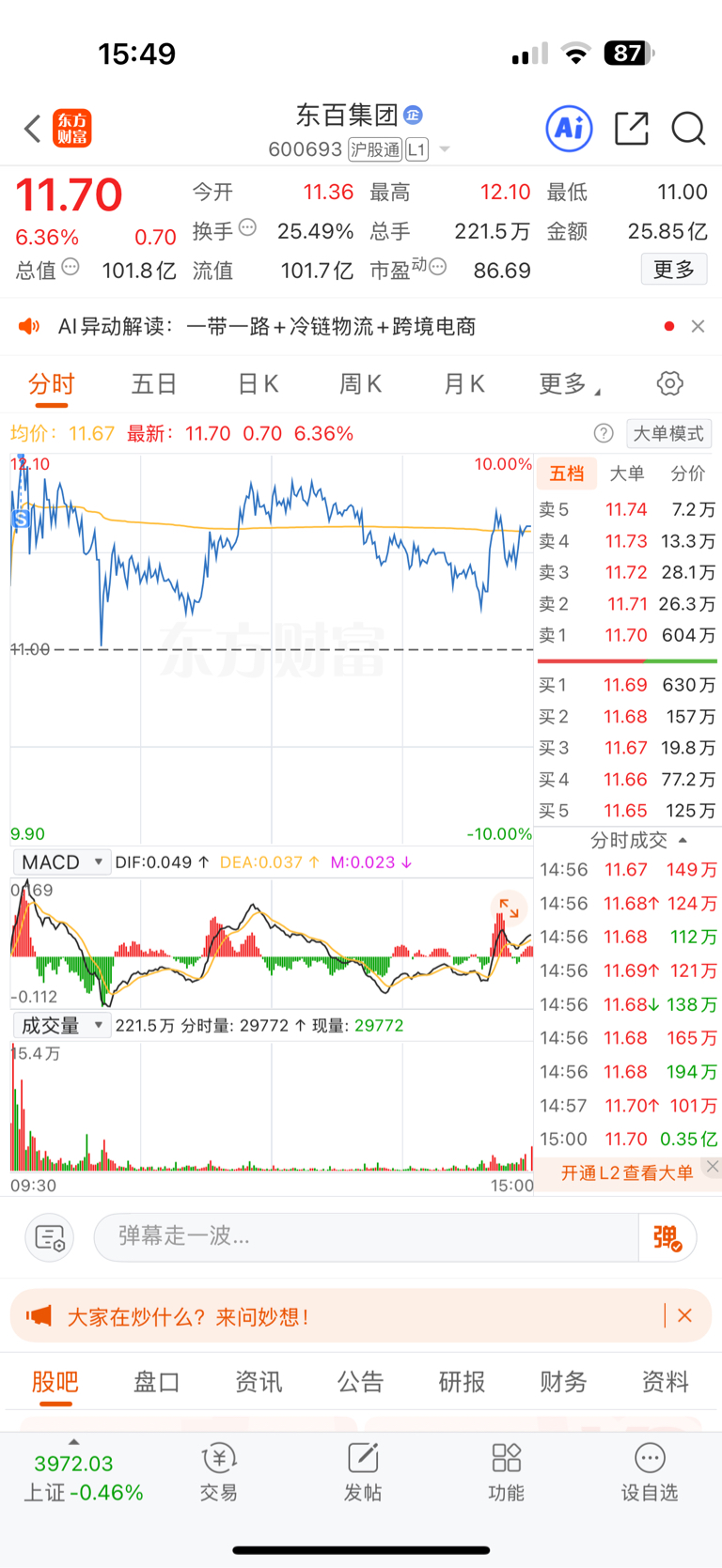 $东百集团(SH600693)$ 实不相瞒各位 今天我砸的