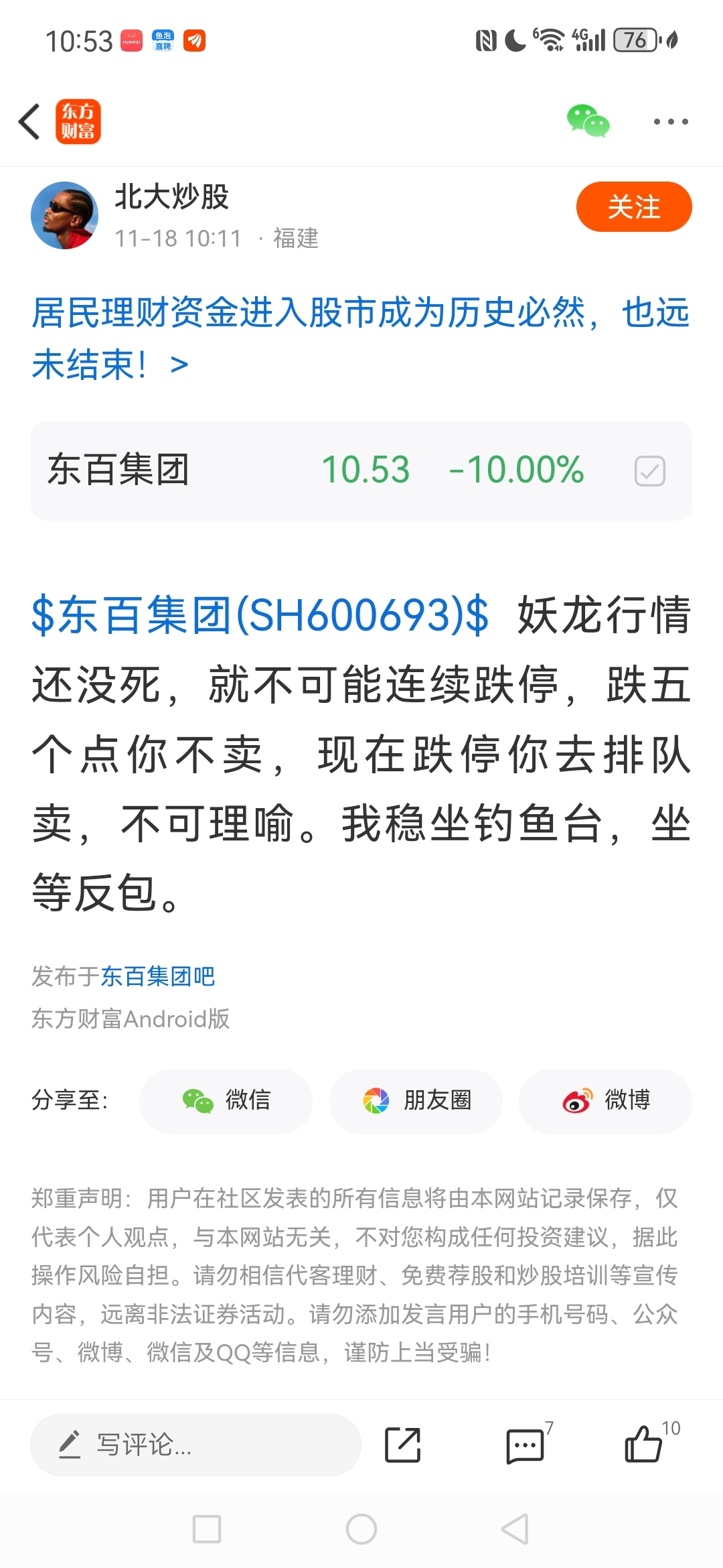 $东百集团(SH600693)$ 说不过就拉黑?一早说反包 后面改口说翘板 我说翘板都不会就拉黑 还说东百是消费龙头 我说前面连板的时候怎么没带动板块 连小弟都没有 还消费龙头 今天唯一跌停消费里面 就这?