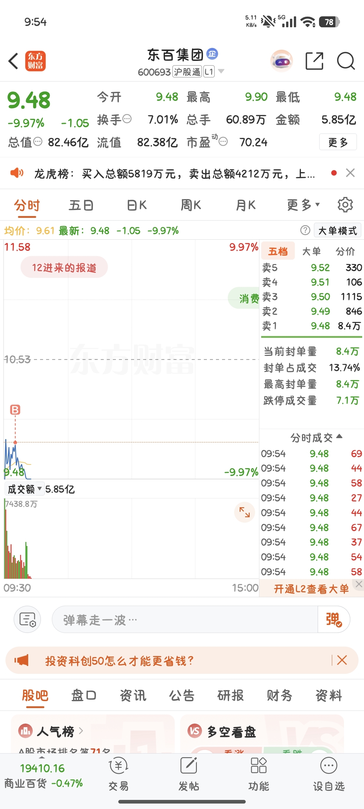 $东百集团(SH600693)$ 对不起兄弟们,怪我
