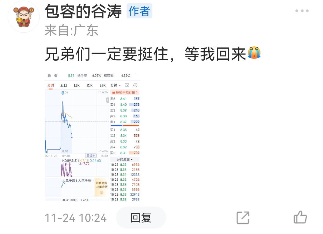 郑重声明:用户在财富号/股吧/博客等社区发表的所有信息(包括但不限于文字、视频、音频、数据及图表)仅代表个人观点,与本网站立场无关,不对您构成任何投资建议,据此操作风险自担。请勿相信代客理财、免费荐股和炒股培训等宣传内容,远离非法证券活动。请勿添加发言用户的手机号码、公众号、微博、微信及QQ等信息,谨防上当受骗!