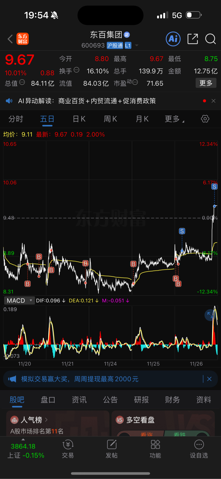 $东百集团(SH600693)$ 明天可以站稳十块吗