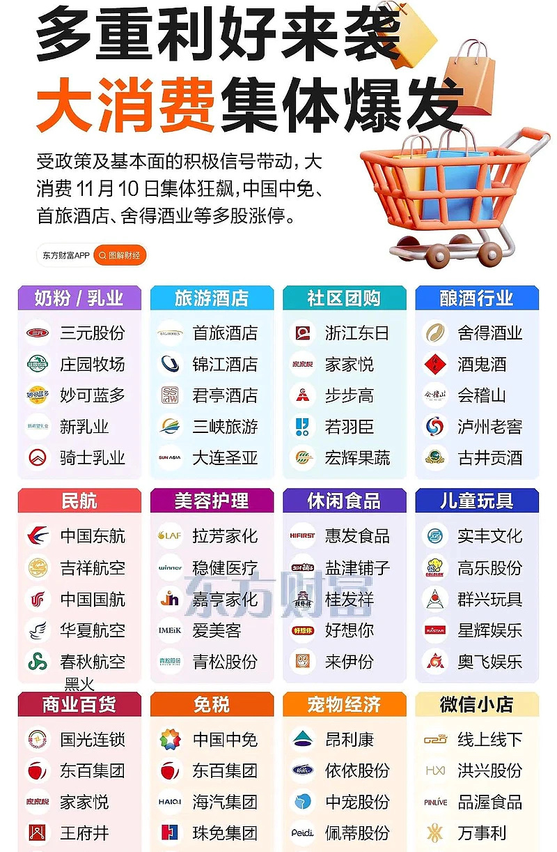 《方案》 明确提出,到2027年,形成3个万亿级消费领域和10个千亿级消费热点。这对消费股无疑注入了一剂强心针。