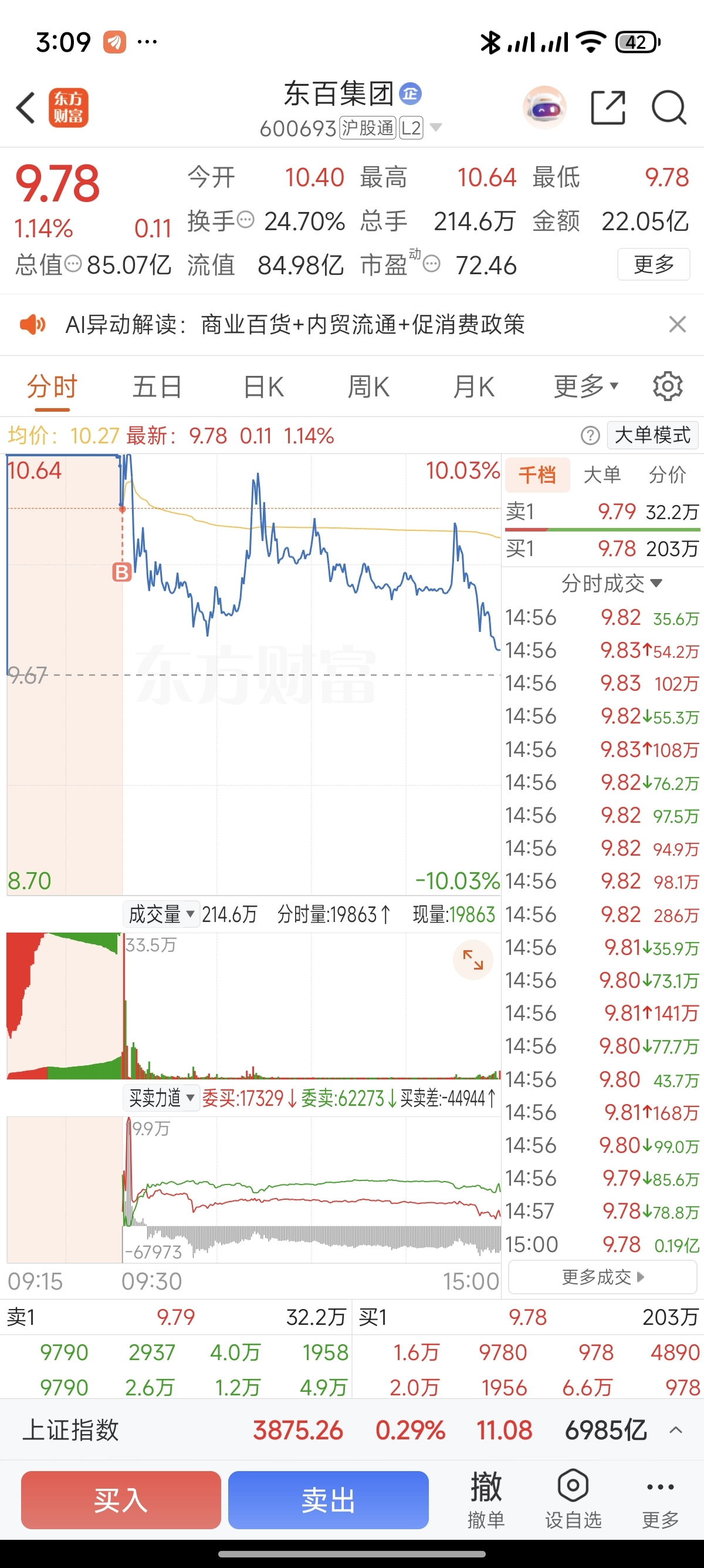 $东百集团(SH600693)$ 唉真的是难啊,明天低开又想砍掉。 难受的很。 消费为什么一直起不来呐 中免涨停一天连跌两个星期。 算了还能亏到哪里去 等两天吧。