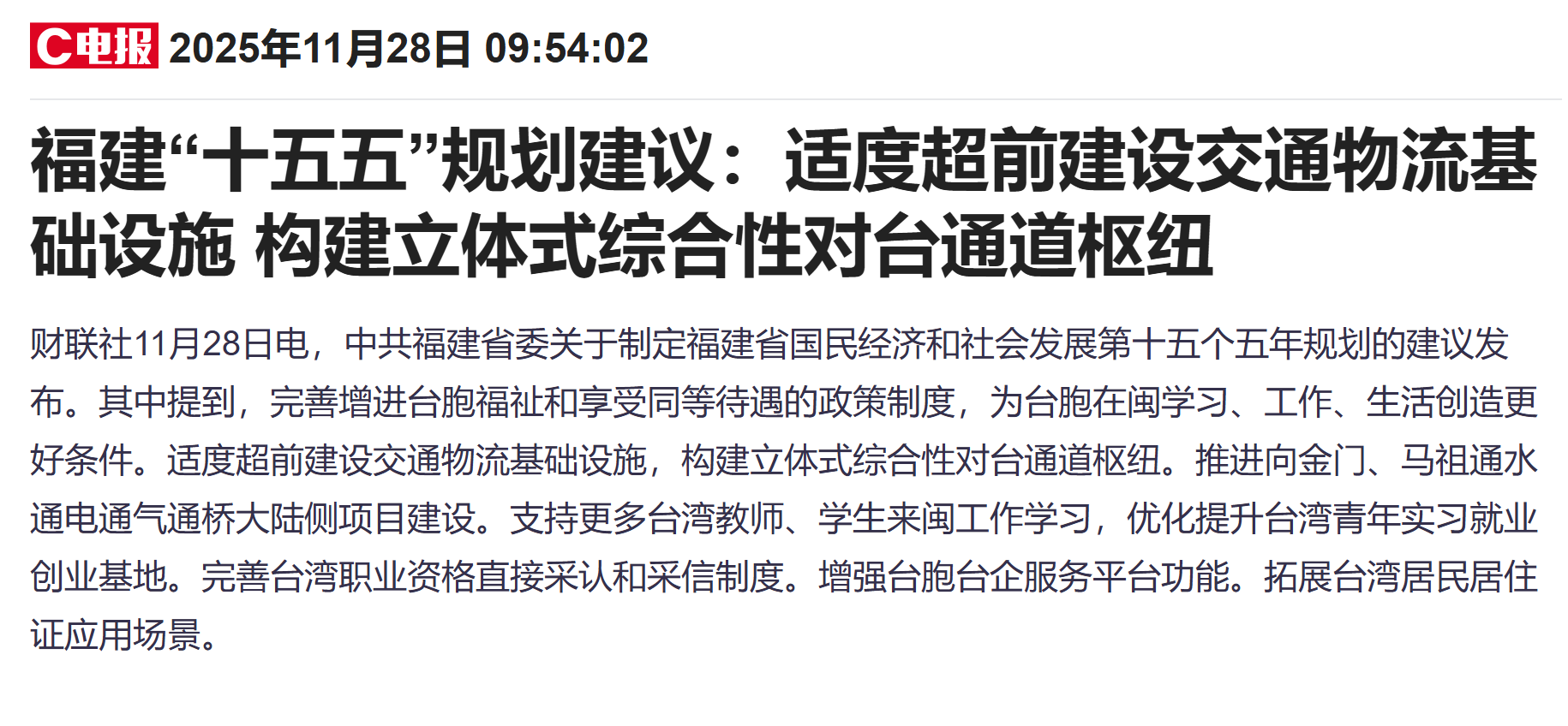 福建十五五规划出来了,适度超前建设【交通物流基础设施】,还要建对台【通道枢纽】!