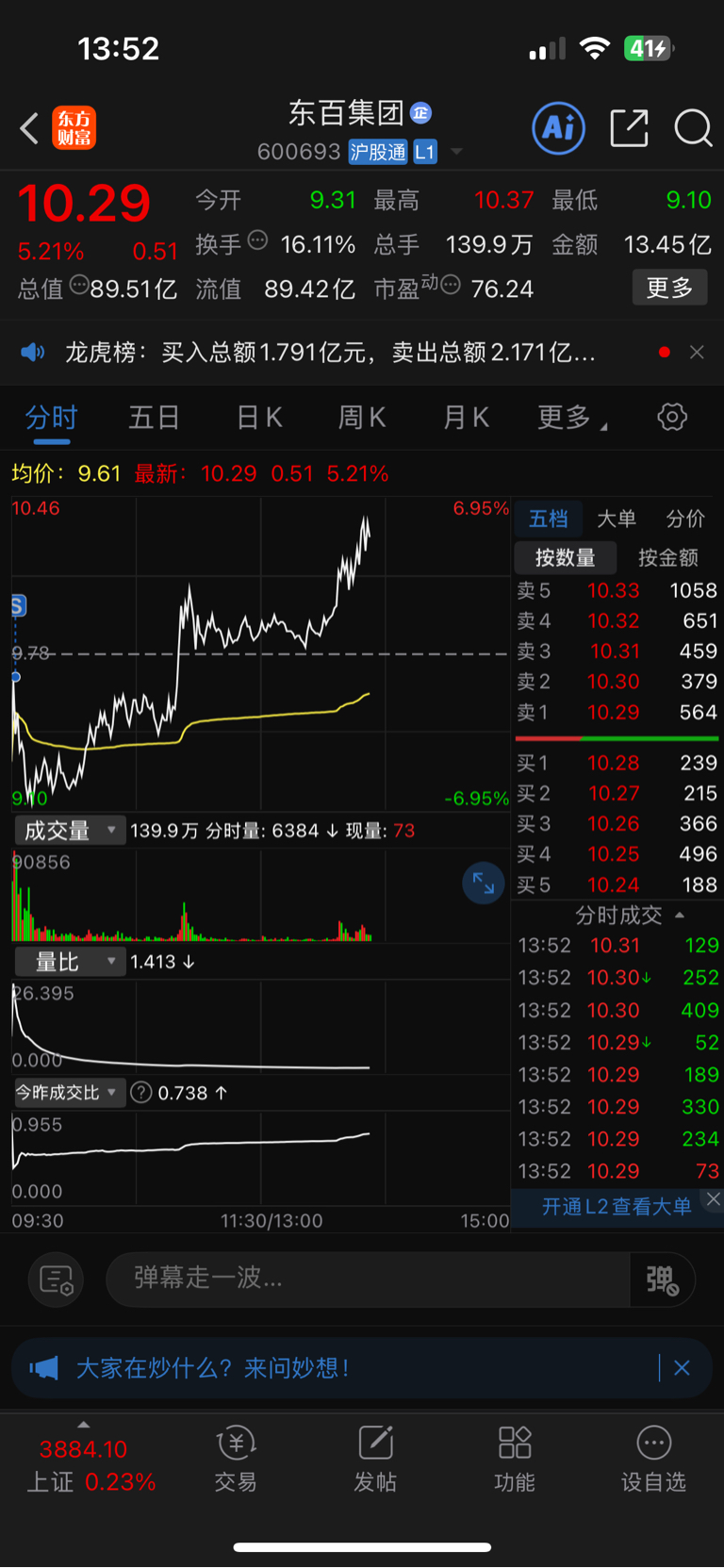 $东百集团(SH600693)$ 卖飞一个亿