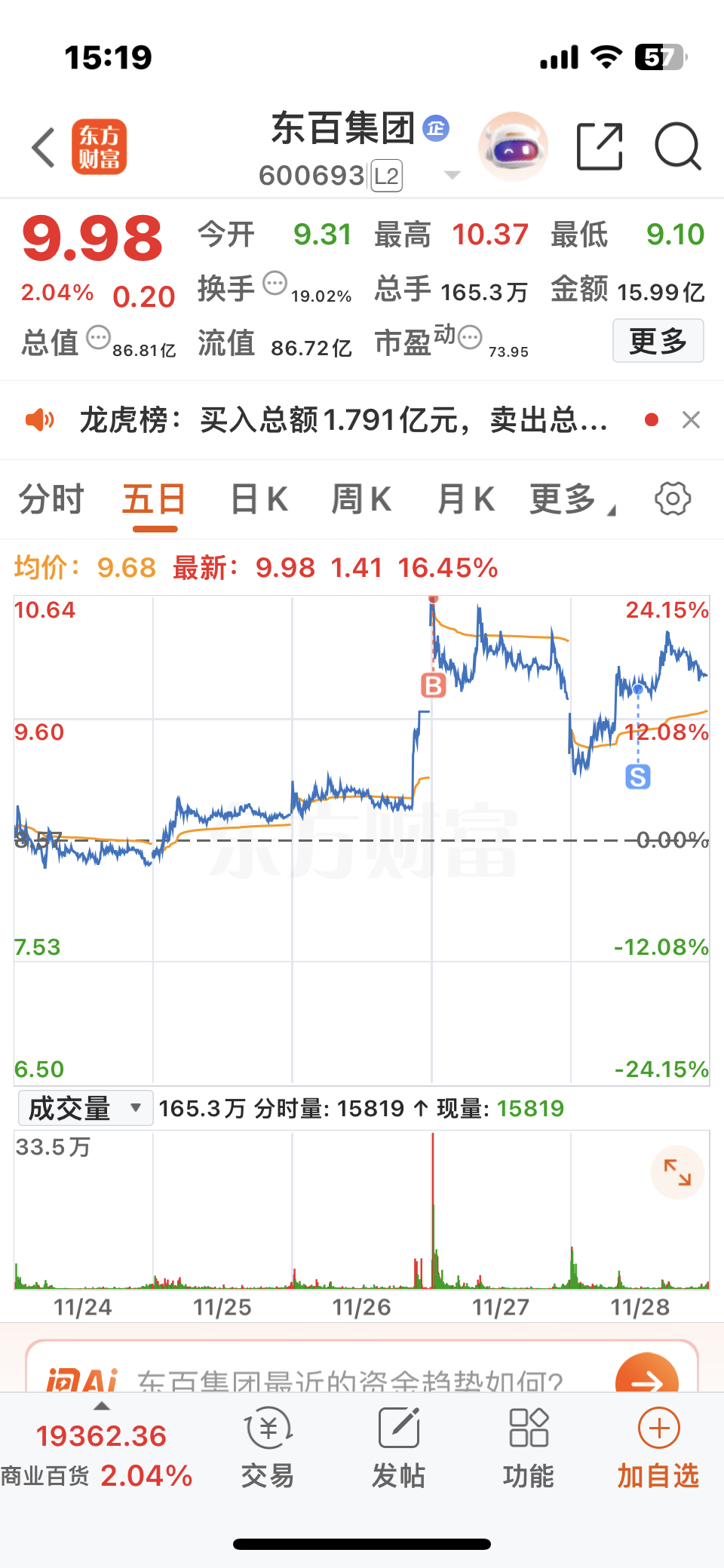 $东百集团(SH600693)$ 这个月被你拖下去了,吐口痰,hei~tu!