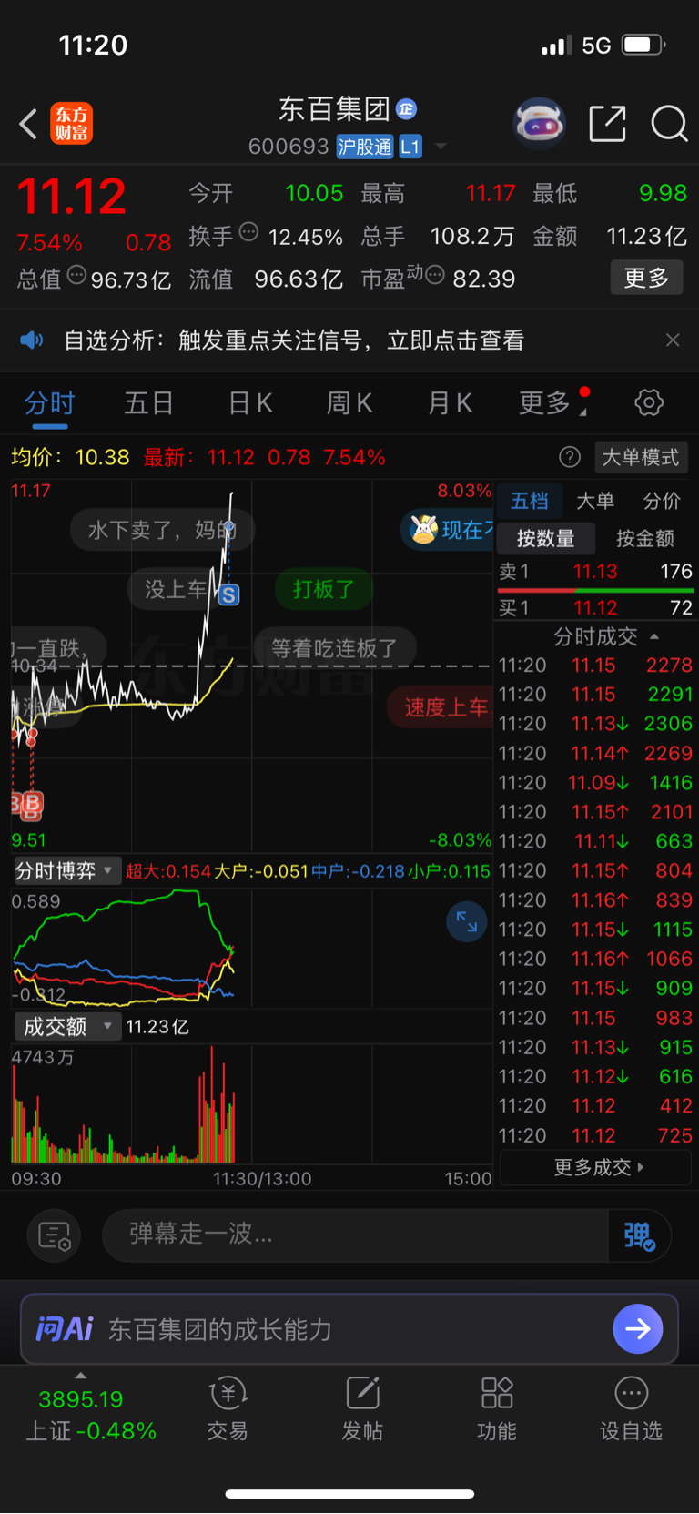 $东百集团(SH600693)$ 留了点仓位,等明天低开