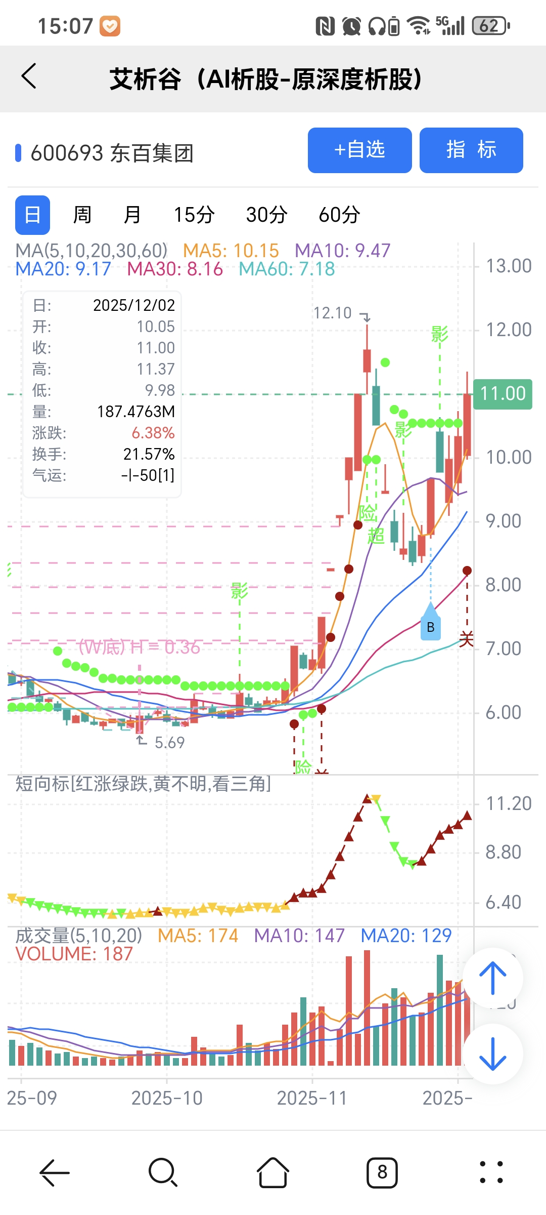 风险:股价下穿短趋线或红变绿。