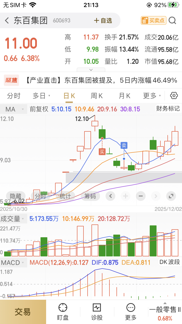 $东百集团(SH600693)$ 请教高手,我到底错在哪了,高位买进就吃了三个跌停,饱受折磨,扛了几天一点反弹都没有,灰心割肉了,到今天又到前高,好后悔没拿住啊,难道我被勾庄盯上了吗?求高手指点迷津,