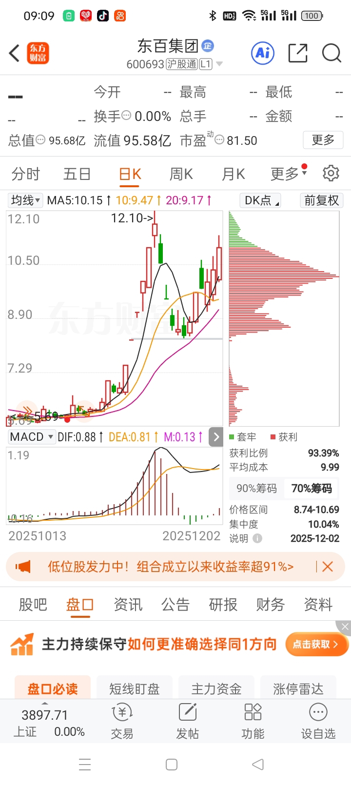 $东百集团(SH600693)$ 绩优股。趋势形成,没改变。主升浪才开始,MACD刚金叉,KDJ金叉,布林线中轨,低开就可以满仓买入。