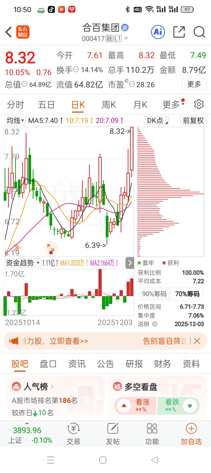 商业百货。带头大哥,合百集团,冲涨停板了。