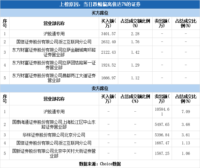 沪股通现身龙虎榜,东百集团跌停(12-03)