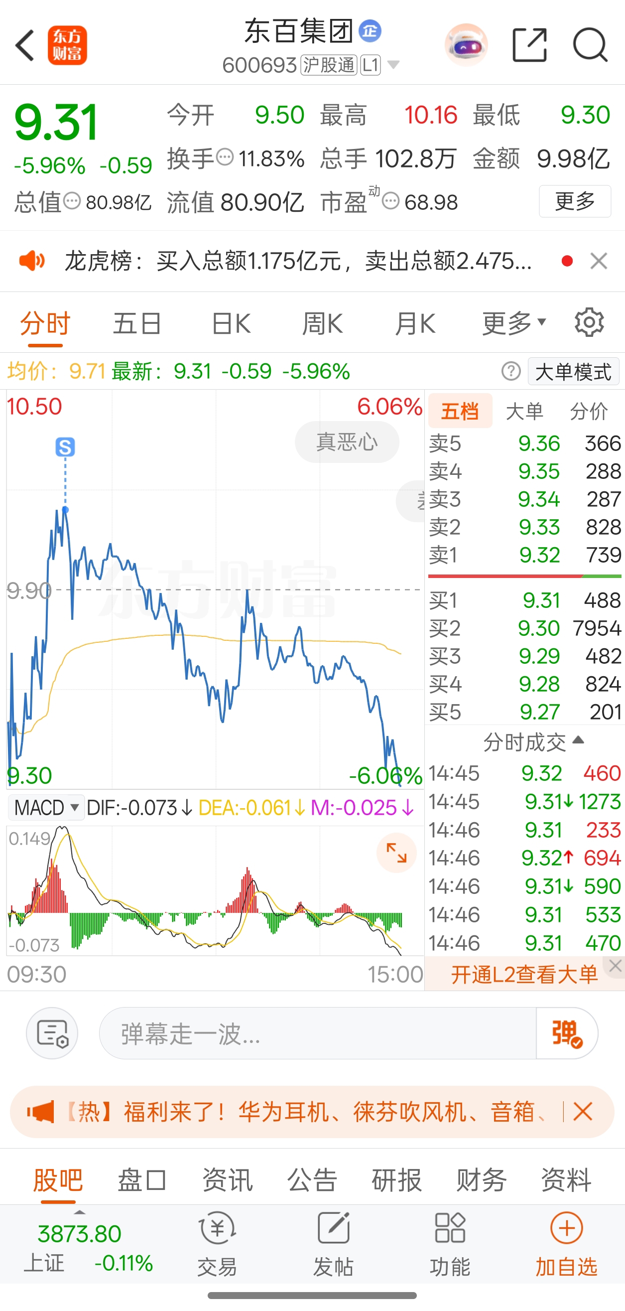 $东百集团(SH600693)$ 成功的跑了,本来赚好几万,最后就赚几百。