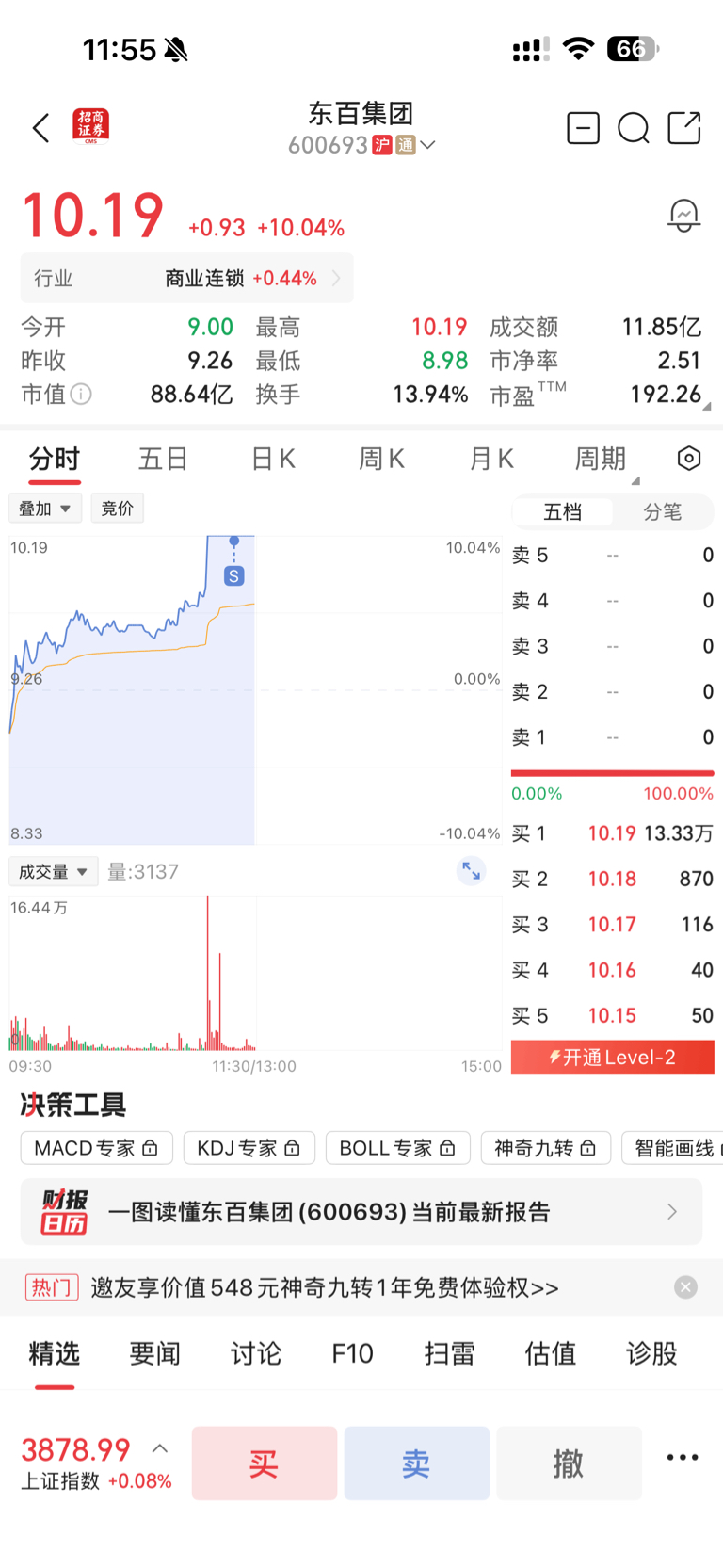 $东百集团(SH600693)$ 前天买入,昨天t亏了,今天卖出,小亏,换新华都,期待下午能涨停,把亏本部分补一下